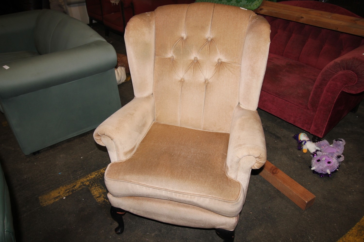 Lot 1078: Clean button-backed armchair in taupe velour