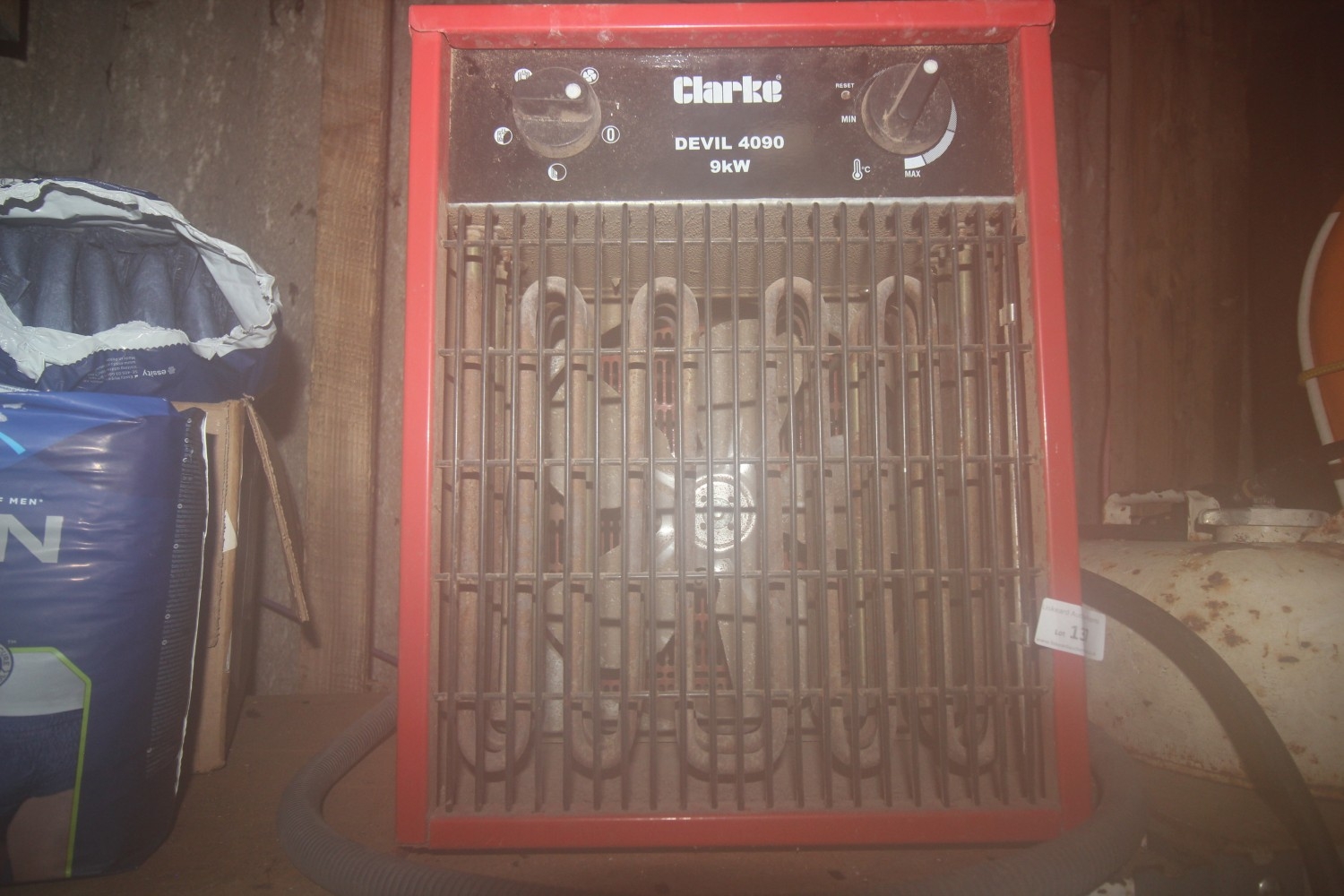 Lot 137: clarke devil 4090 9kw space saver electric fan...