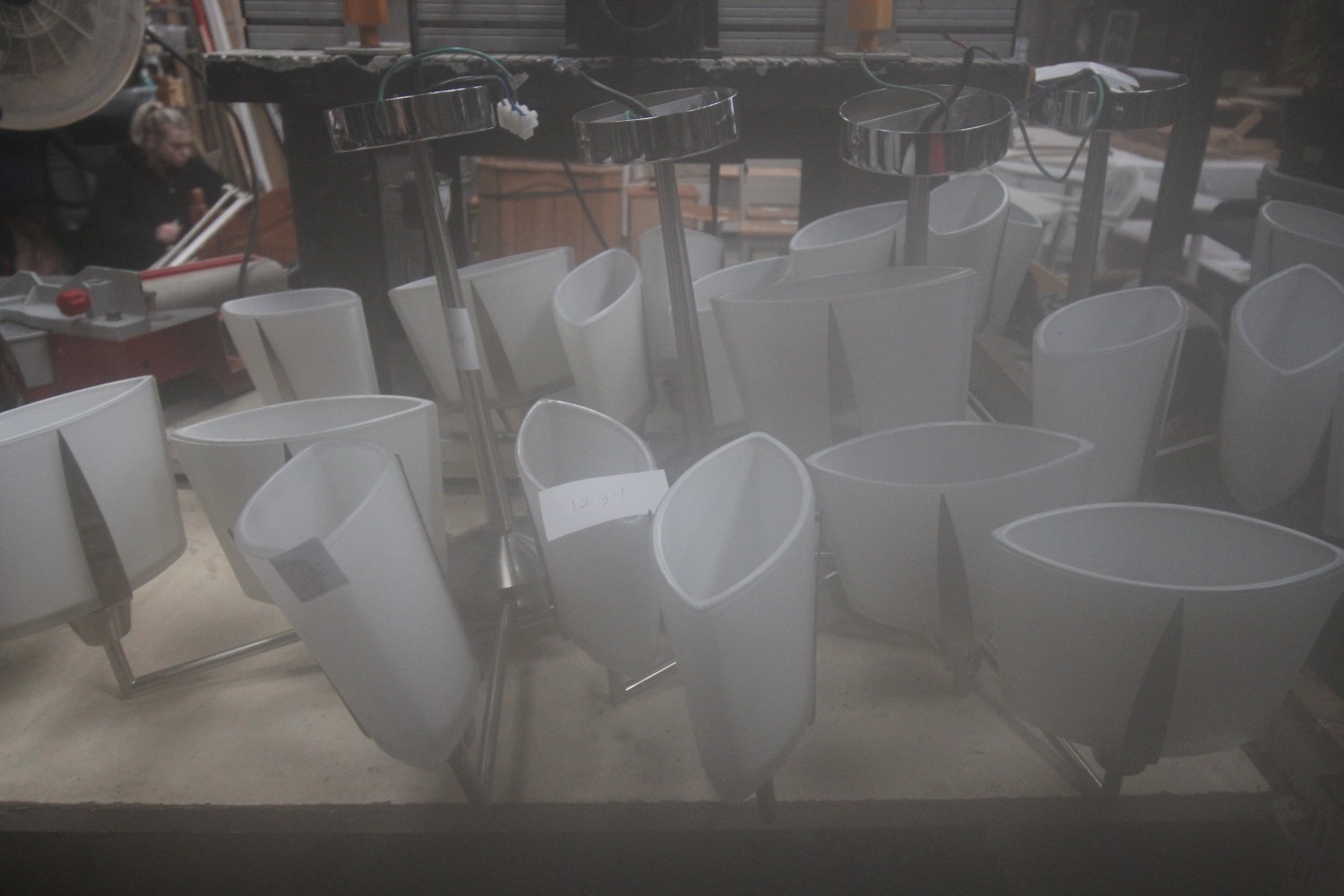 3x light fitting chrome and white glass
