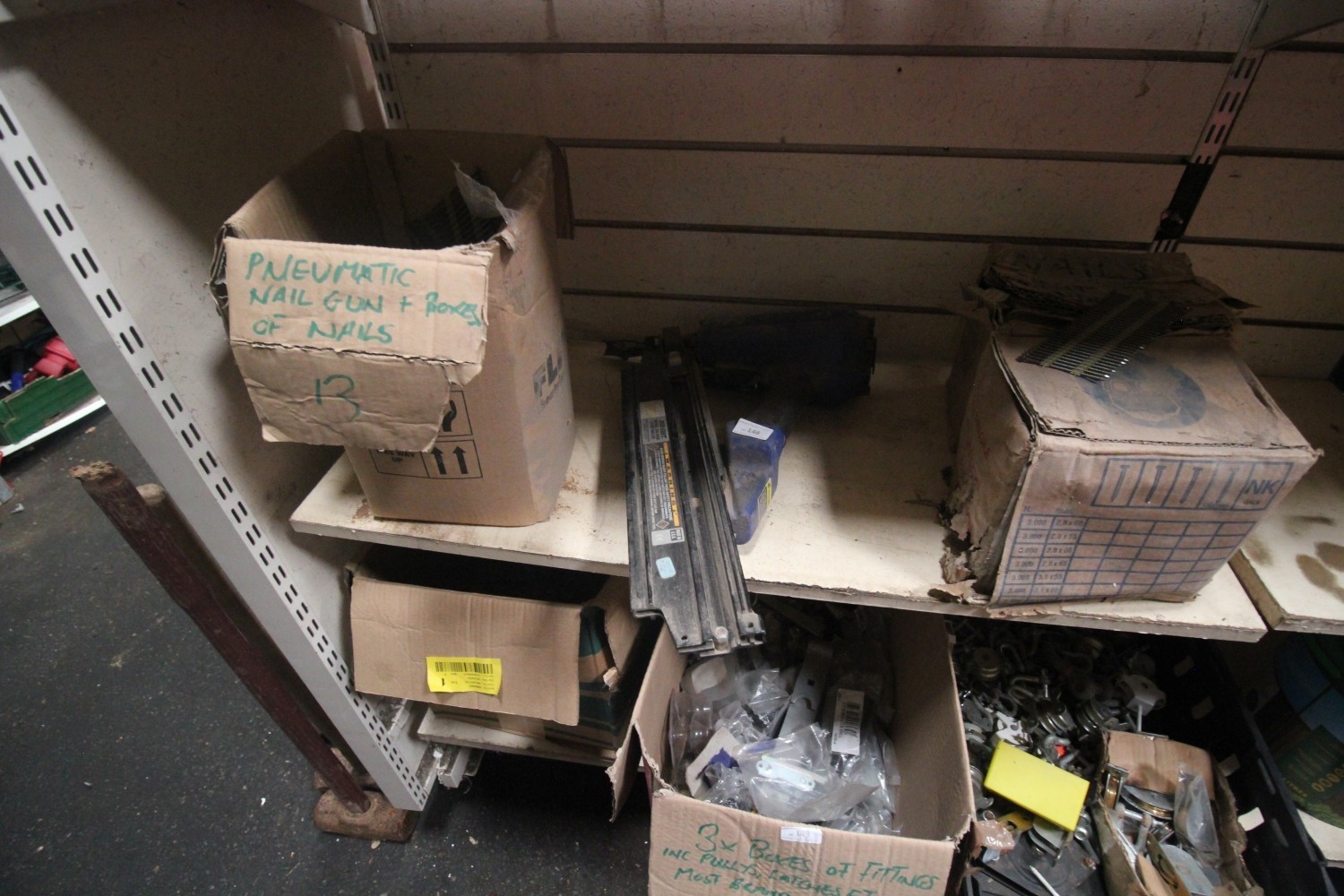 Lot 148: pneumatic nail gun inc many stips of nails