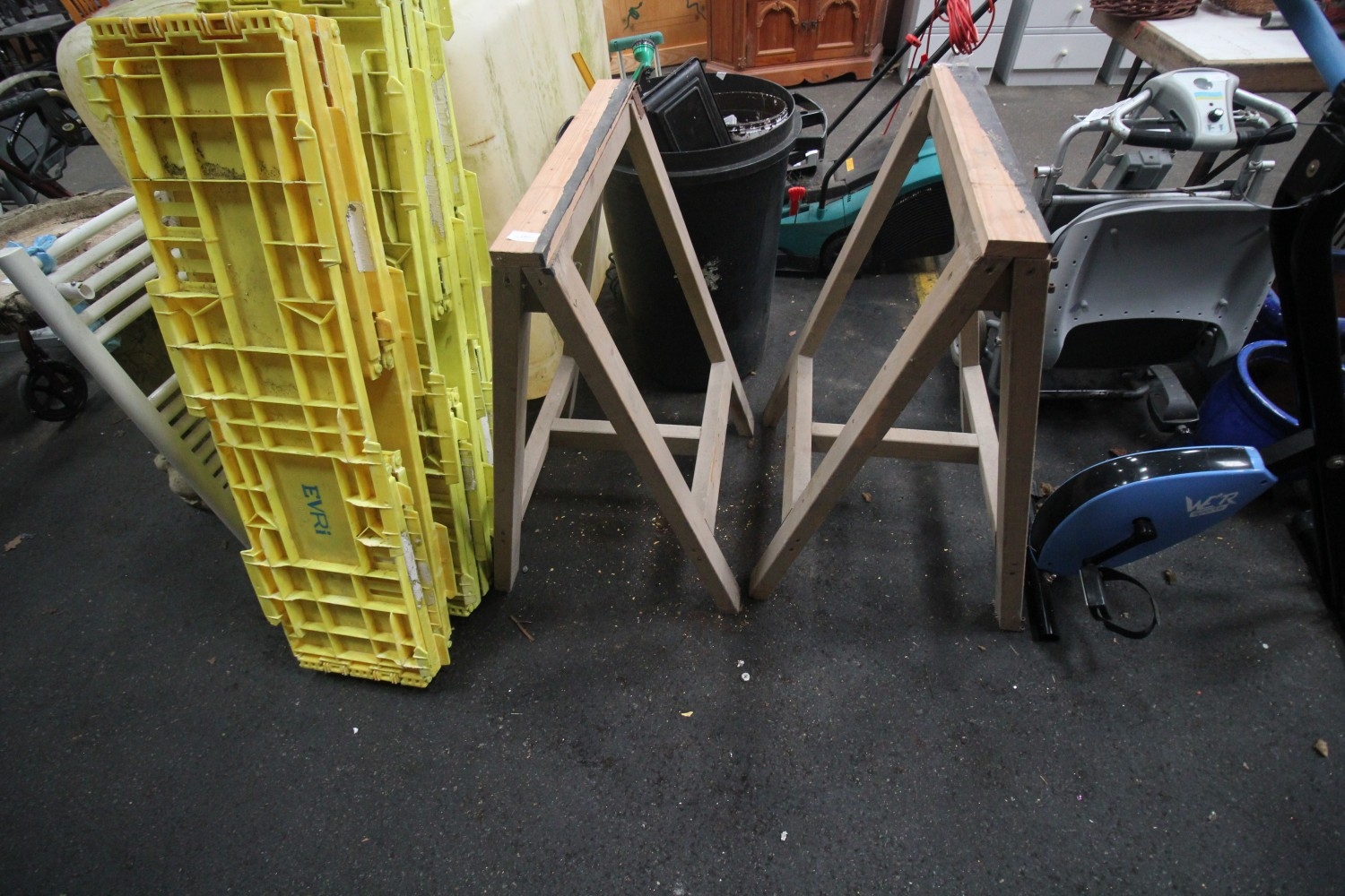 Lot 180: Pair of clean wooden Carpenter's saw horses /...