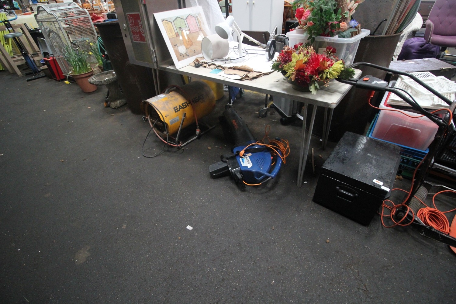 A sturdy aluminium framed folding leg school-dinner style table. Could also be used as a car boot table