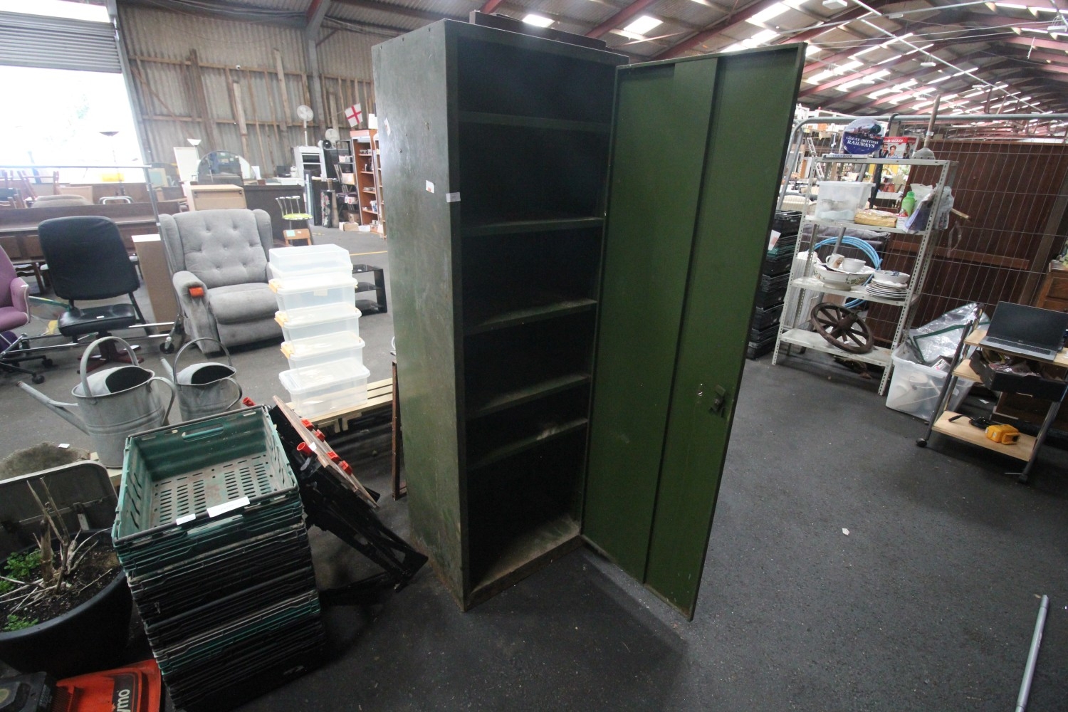 Lot 200: Large vintage steel locker measuring 6' in height...