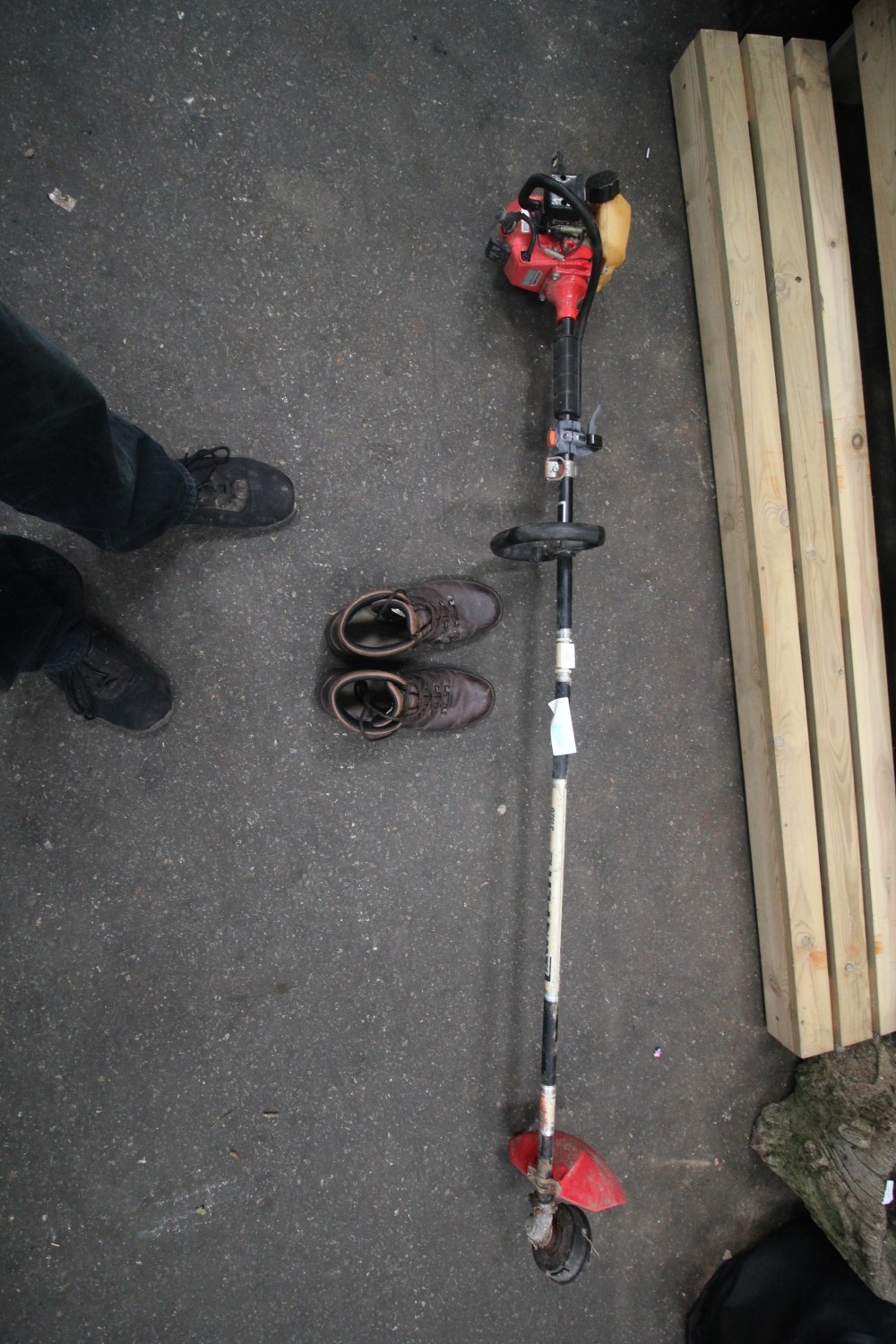 The Lawnflite S1820 petrol strimmer and a pair of size 42 work-boots