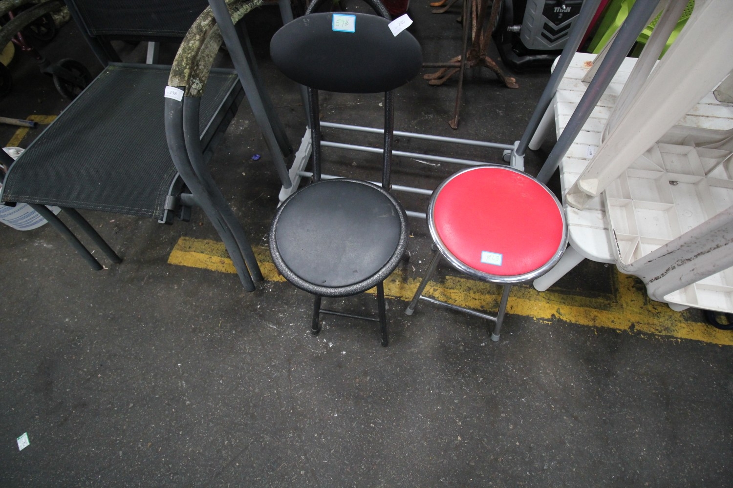 Lot 240: two retro folding metal stools