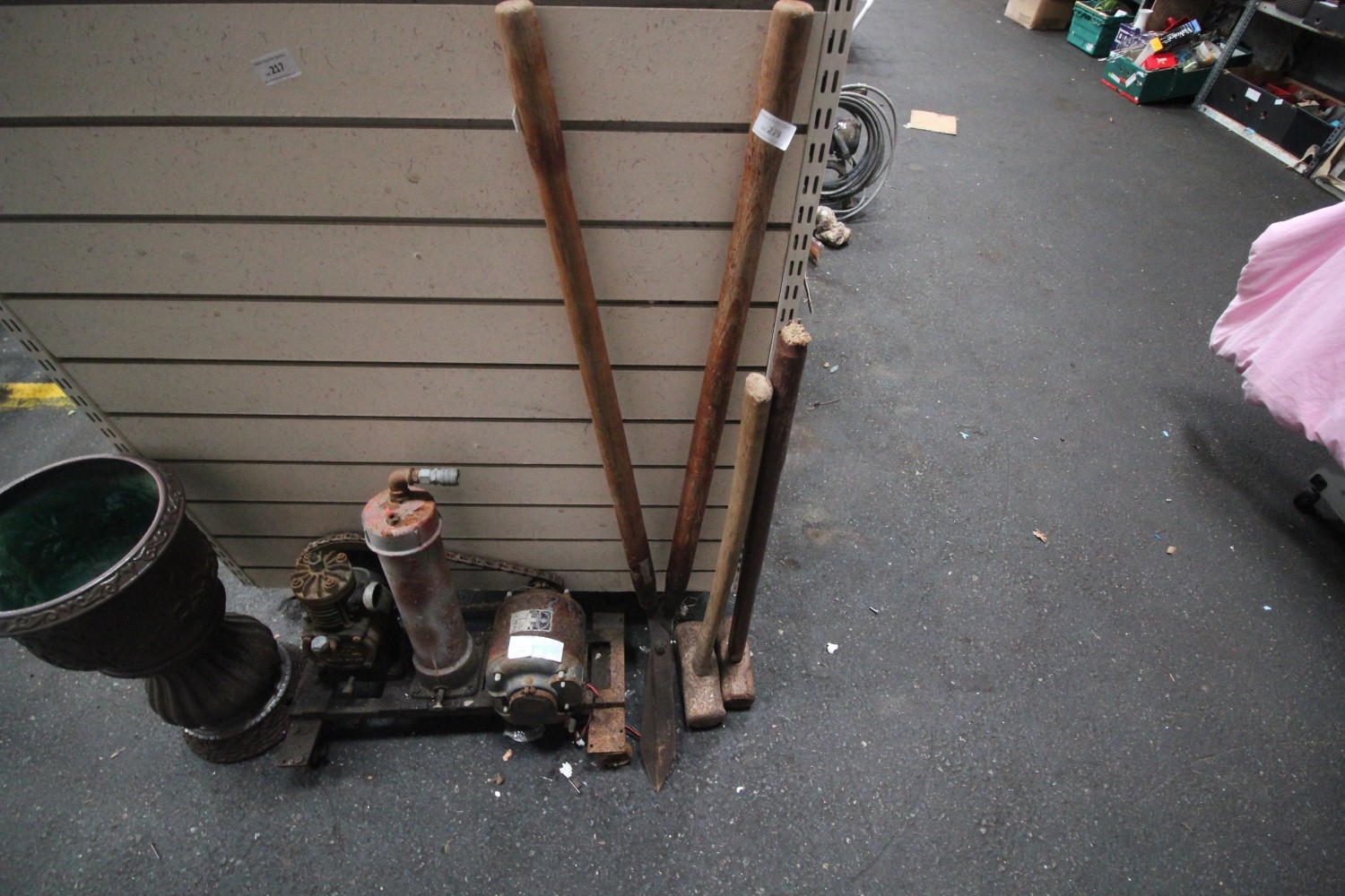 High quality long-handled shears and two hickory handled sledge hammers