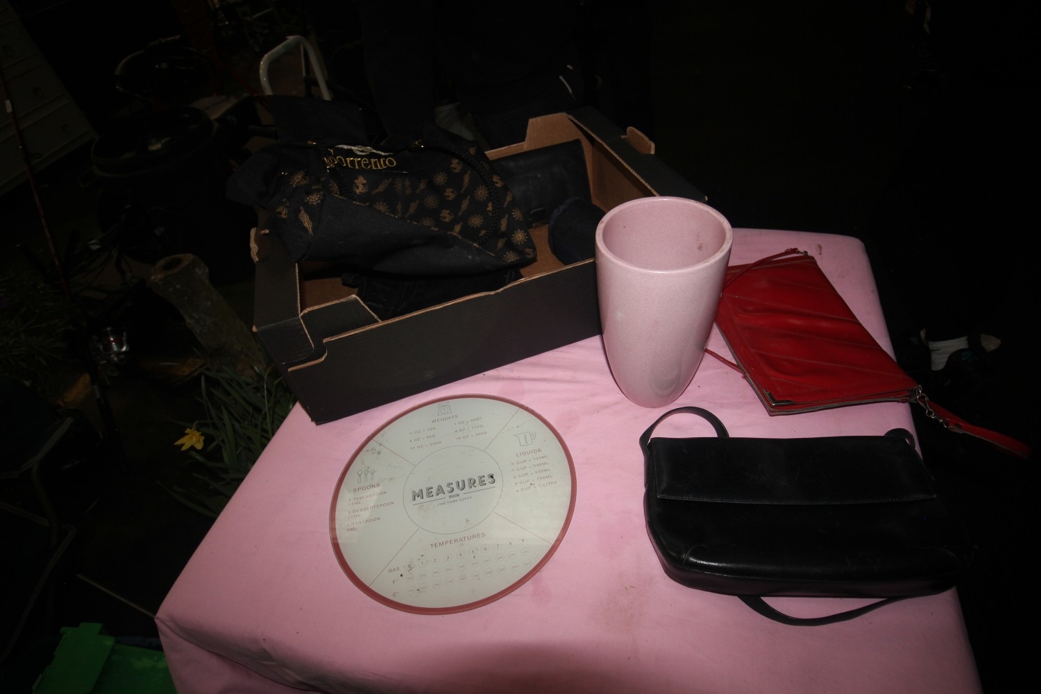 box inc pink glazed ceramic pot, Italian bag, glass chopping board with useful measurements on and more