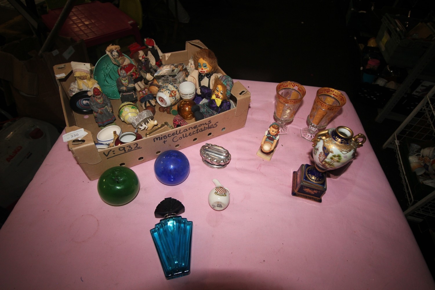 box full of misc collectables inc goss, delf, goebel, vintage Ronson Crown table lighter and others