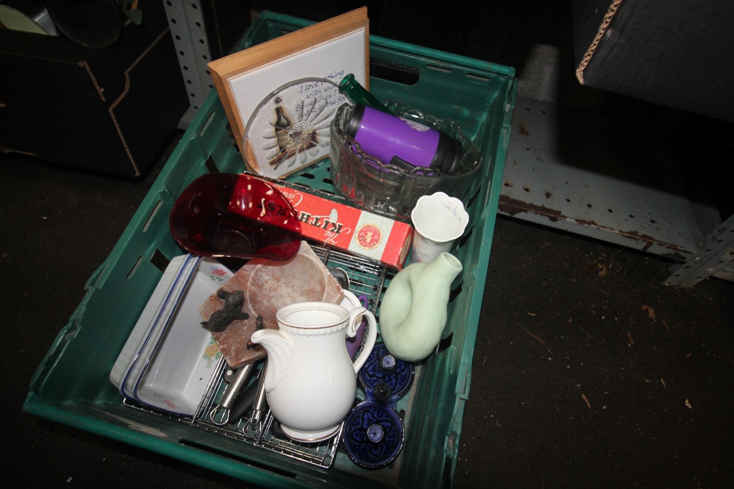 mixed box of items inc a Harrods tea pot, cone incense diffuser and more