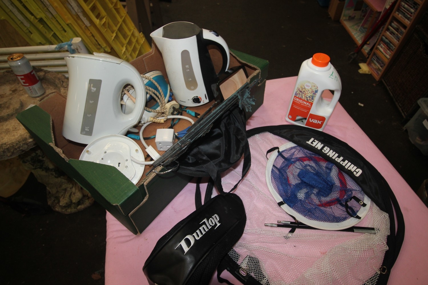 mixed box of dunlop chipping net, kettles, iron and more