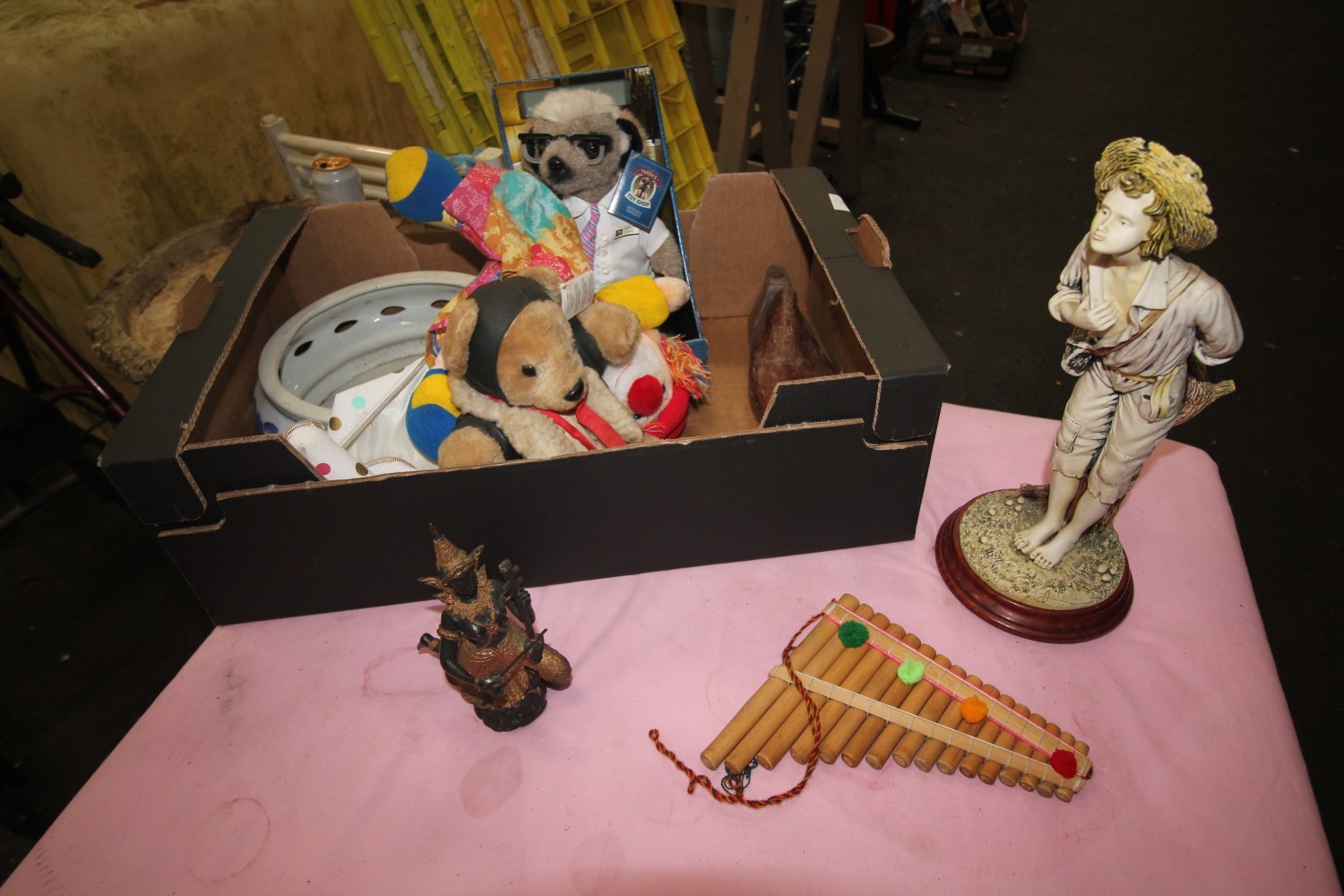 Lot 380: box inc vintage boy ornament, meercat toy in...