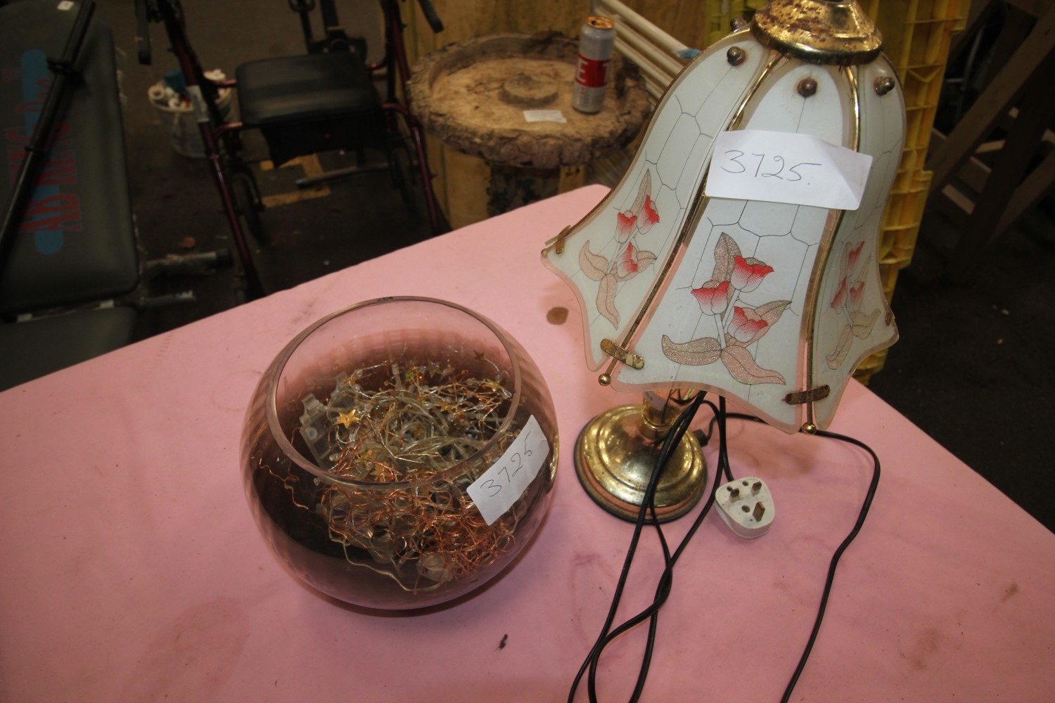 Lot 384: vintage lamp plus decorative glass bowl with lights...