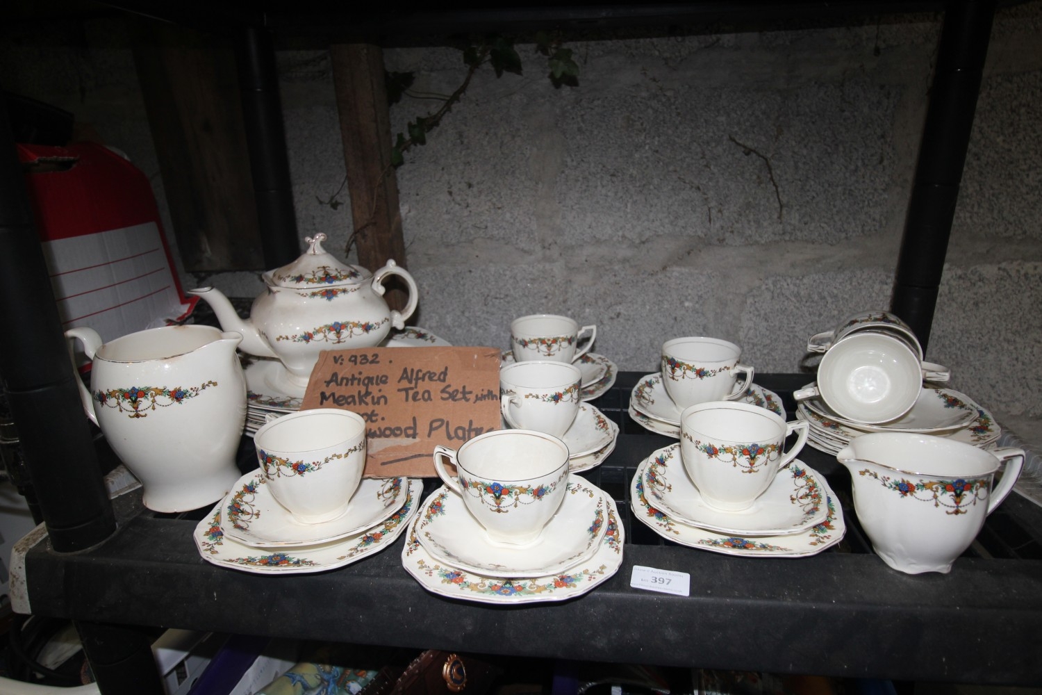 antique alfred meakin tea set with tea pot plus wedgewood plates