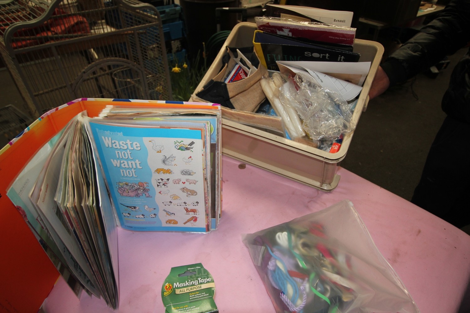 very mixed box inc binders stamp pad foam a selection ribbons and strings ect
