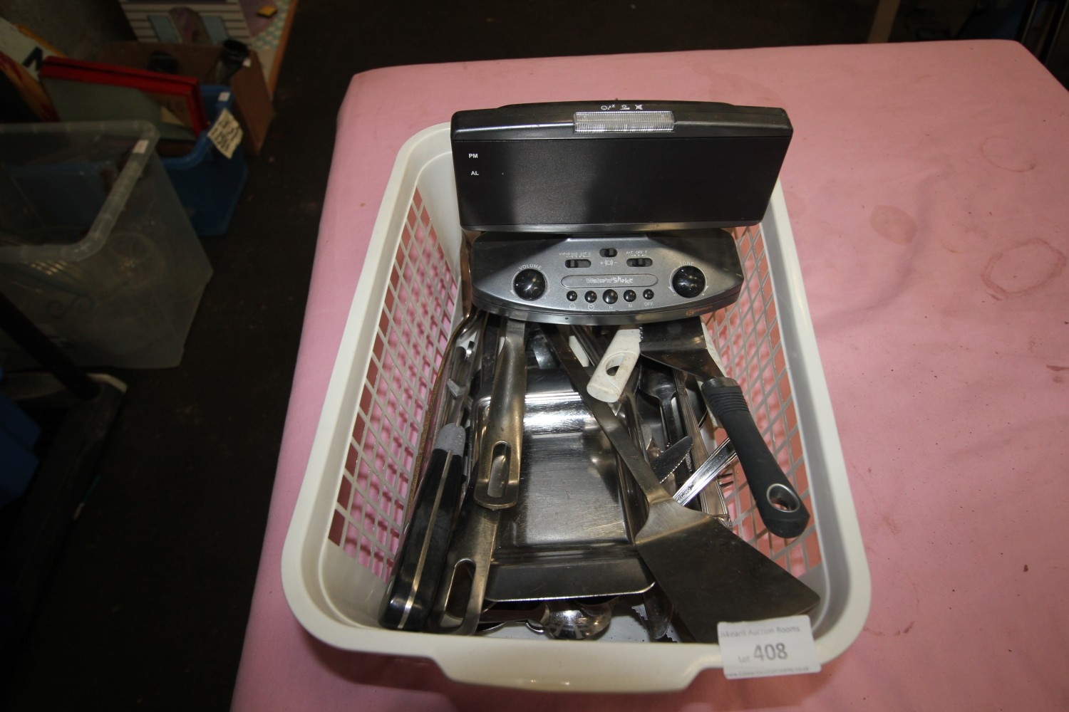 Lot 408: plastic tub inc various peices of cuttlery and...