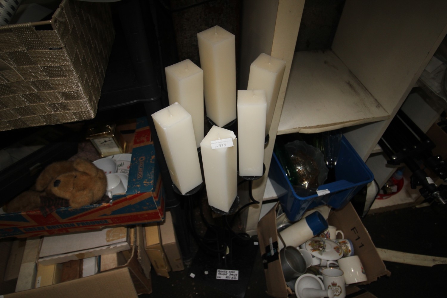 Lot 419: twisted arm candle stand with 6 new candles