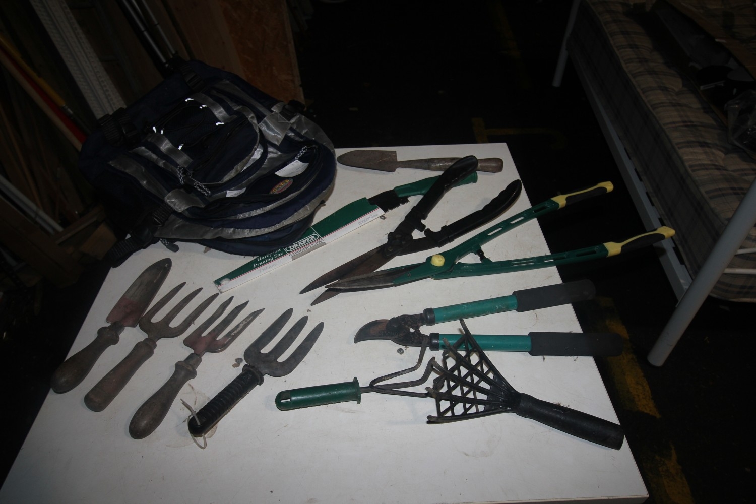 Lot 49: rucksack of assorted garden tools