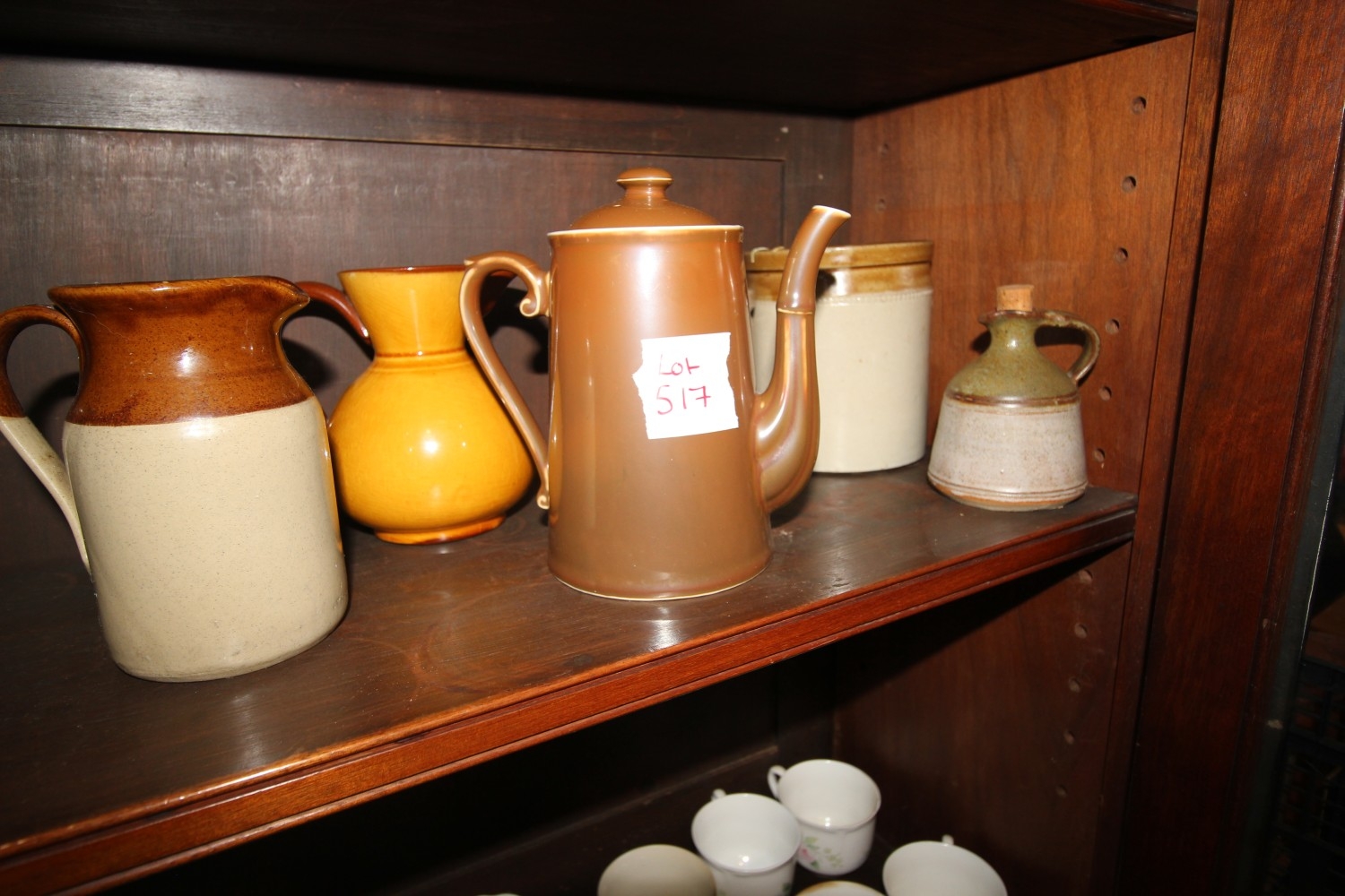 Lot 517: selection of brown and yellow jugs inc moira,...