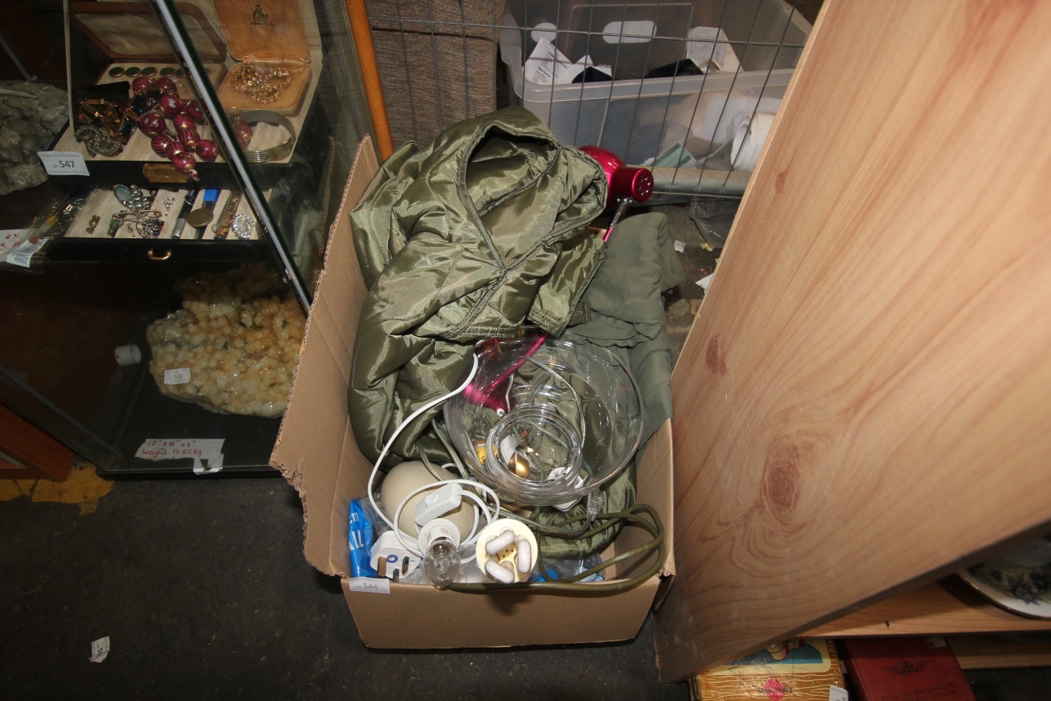 Lot 544: box inc crystal glass bowl, qty lamps and...