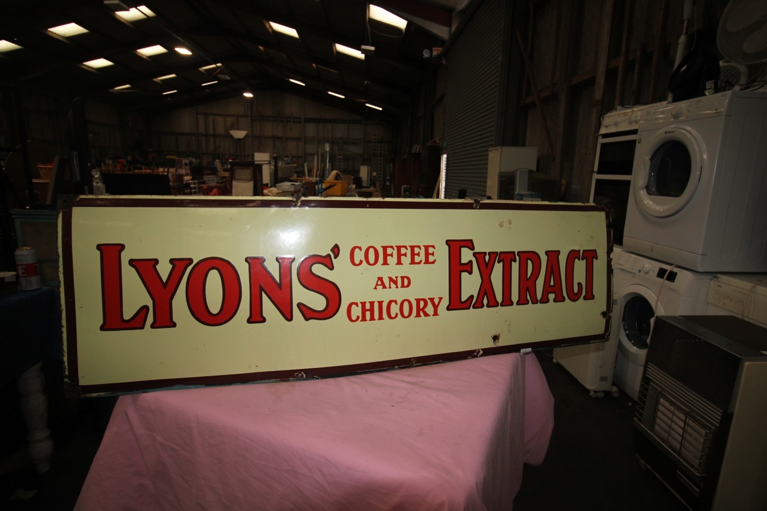 Lot 581: vintage enamel lyons coffee and chicory extract sign...