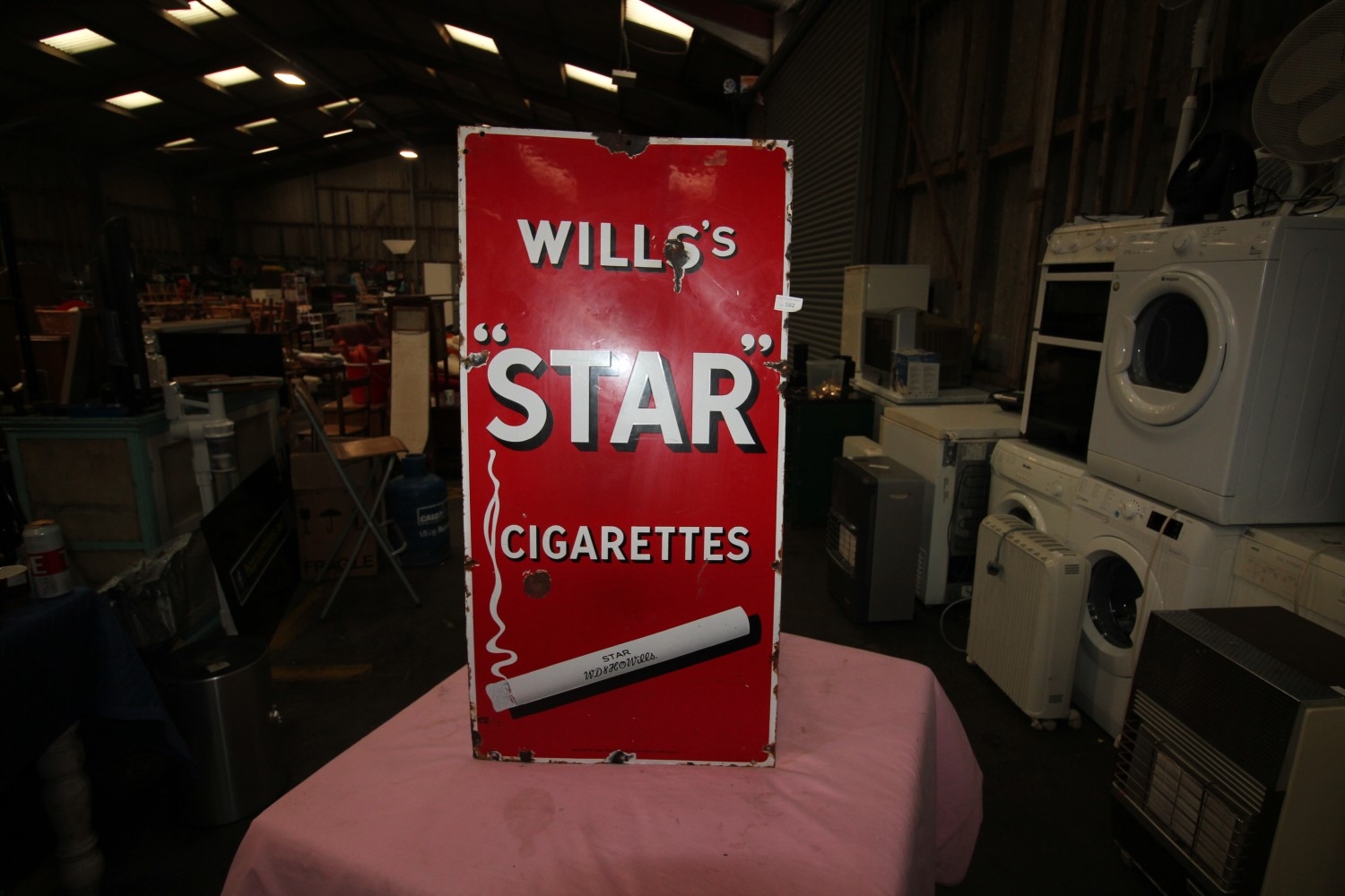 vintage enamel wills’s star cigarettes sign measuring 36" x 18"