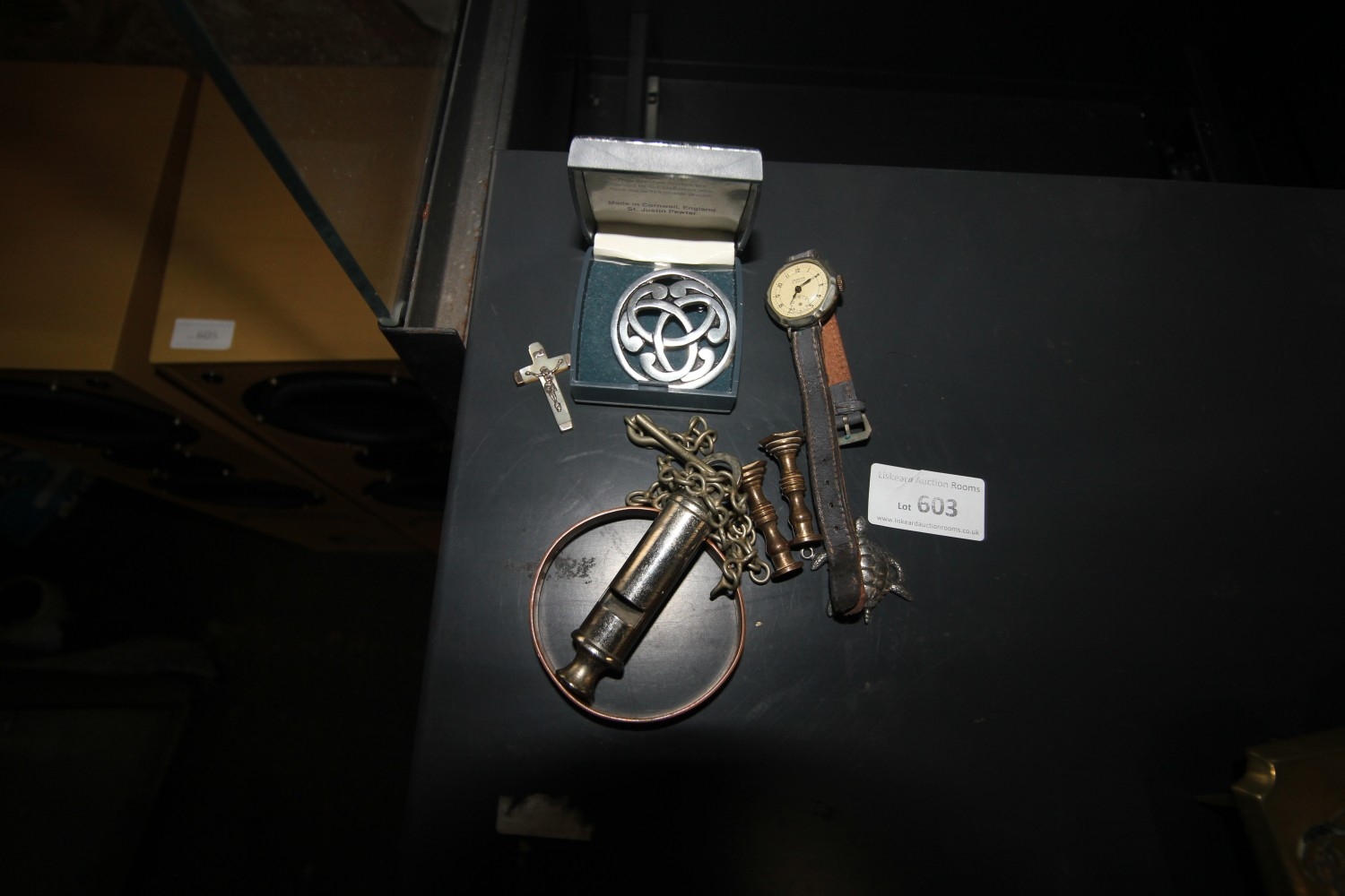 selection of pewter and others inc train acme city whistle, vintage ornema ladies watch etc