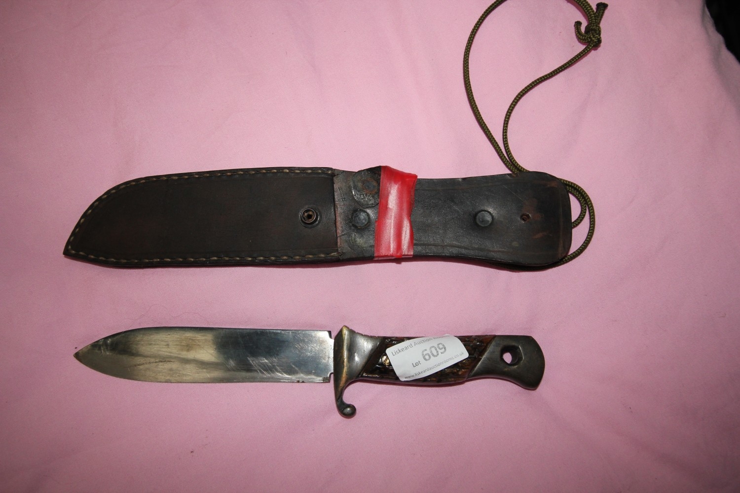 Lot 609: VERY GOOD QUALITY SURVIVAL KNIFE AND QUALITY LEATHER...