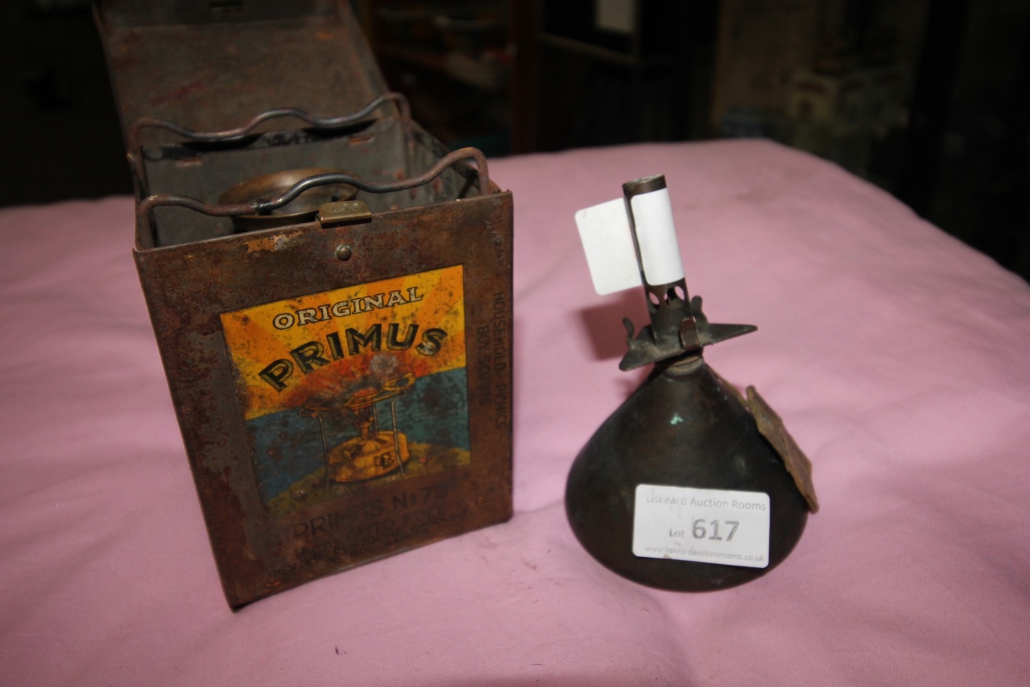 Lot 617: vintage original primus gas lamp plus indicating funnel