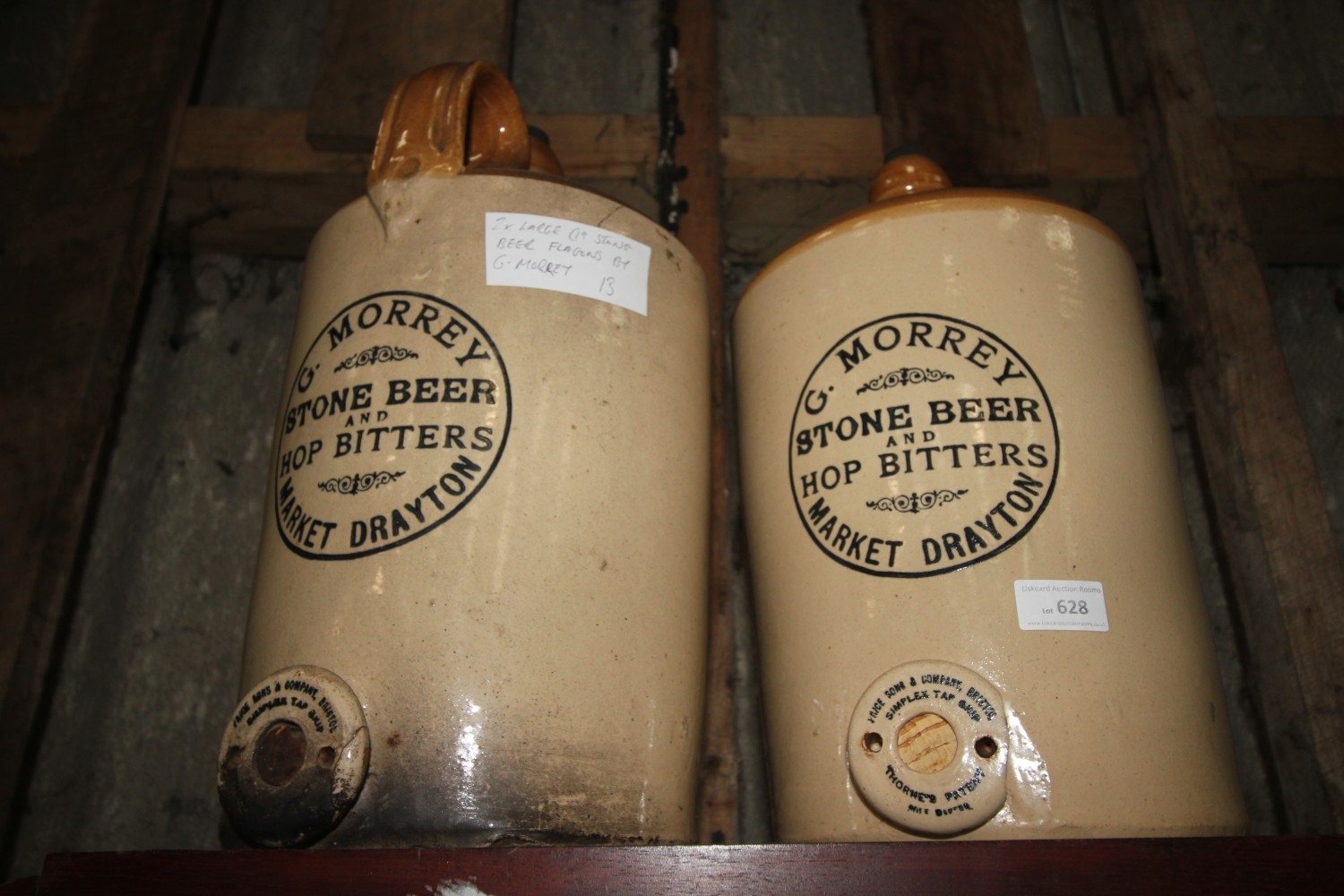 Lot 628: 2 large 19 stone beer flagans by G.Morrey