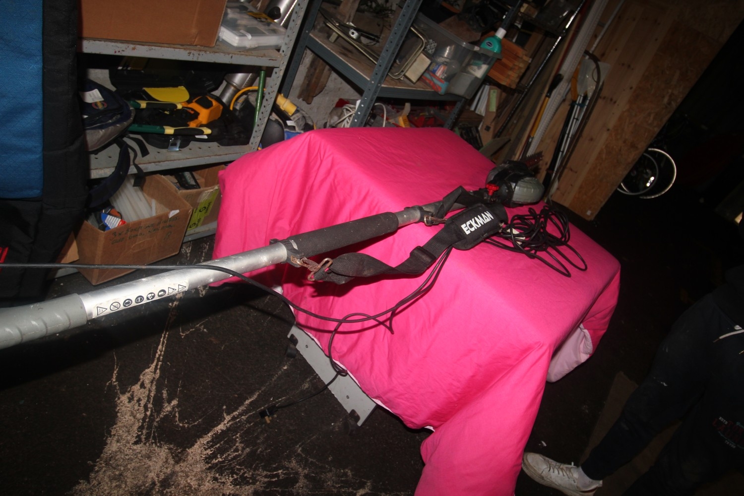 An Eckman telescopic hedge trimmer with carry strap
