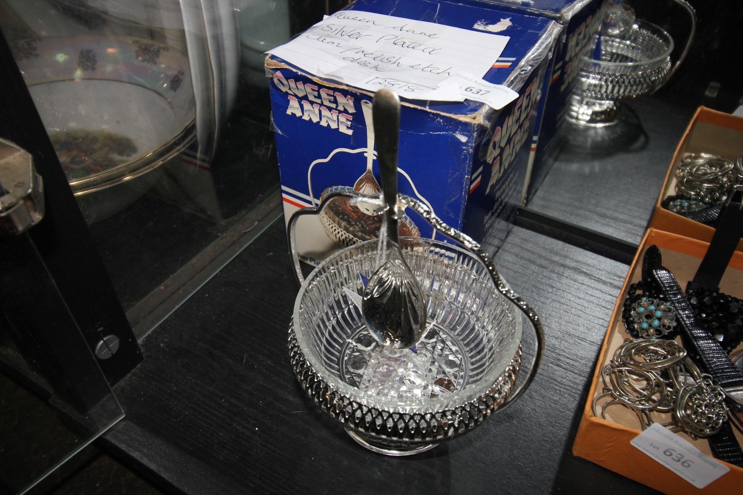 Lot 637: queen anne silver plated jam/relish dish