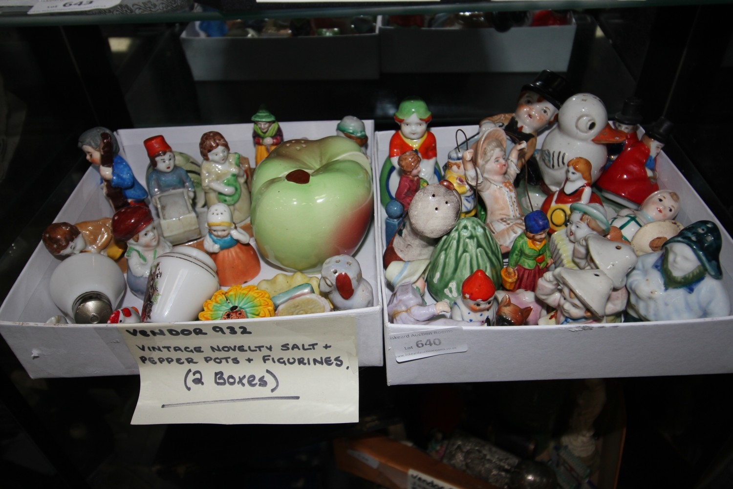 vintage novelty salt and pepper pots and figurines – 2 boxes