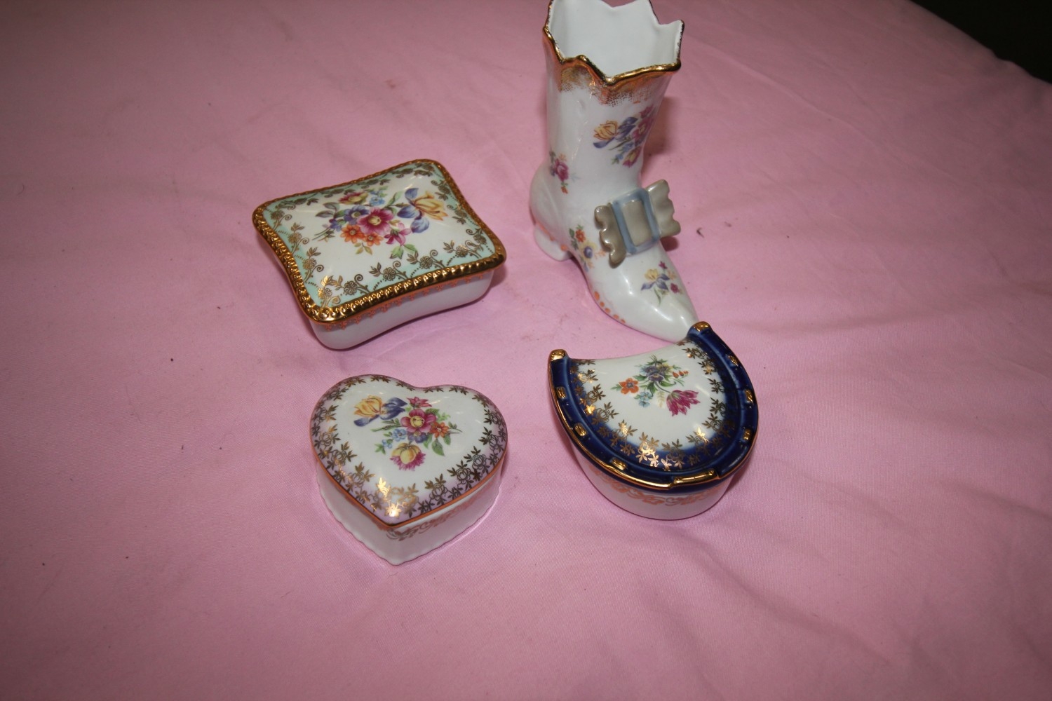4 X SIGNED DRESDEN CERAMIC TRINKET POTS ALL GOOD CONDITION