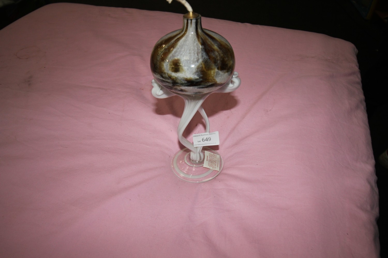 Lot 649: vintage studio art glass iridescent pedestal oil lamp...