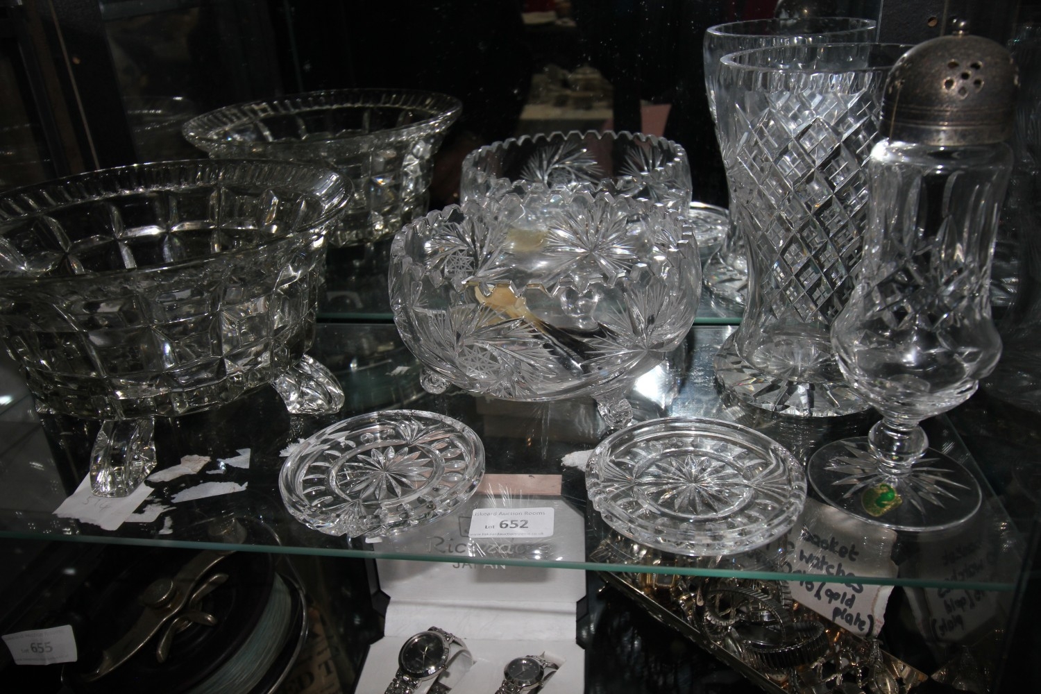 Lot 652: cut crystal decorative bowls, sugar shaker, 3 real...