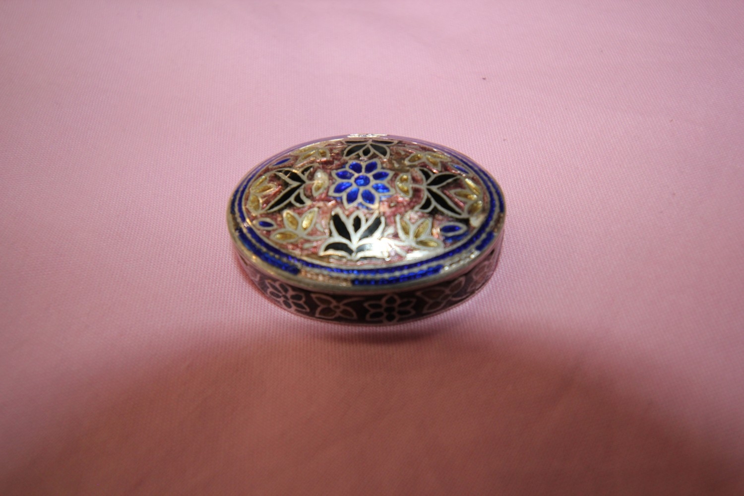 Lot 659: SILVER STAMPED AND ENAMELLED TRINKET POT