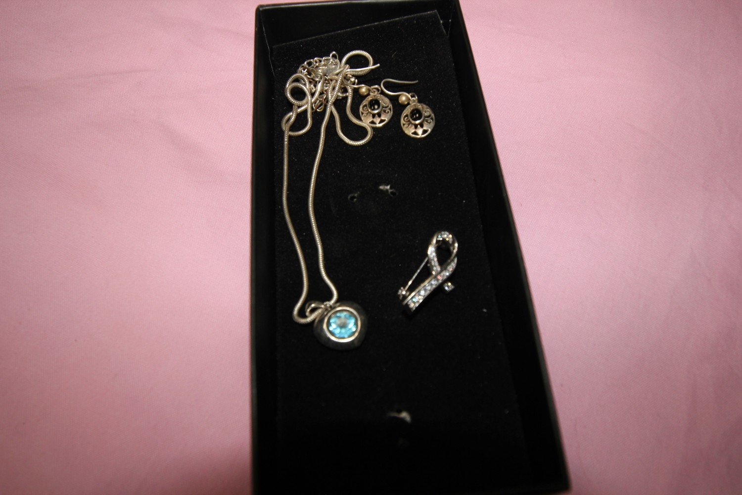 large selection of silver inc silver and CZ brooch, silver pendant necklace and pair of earrings 14.4g