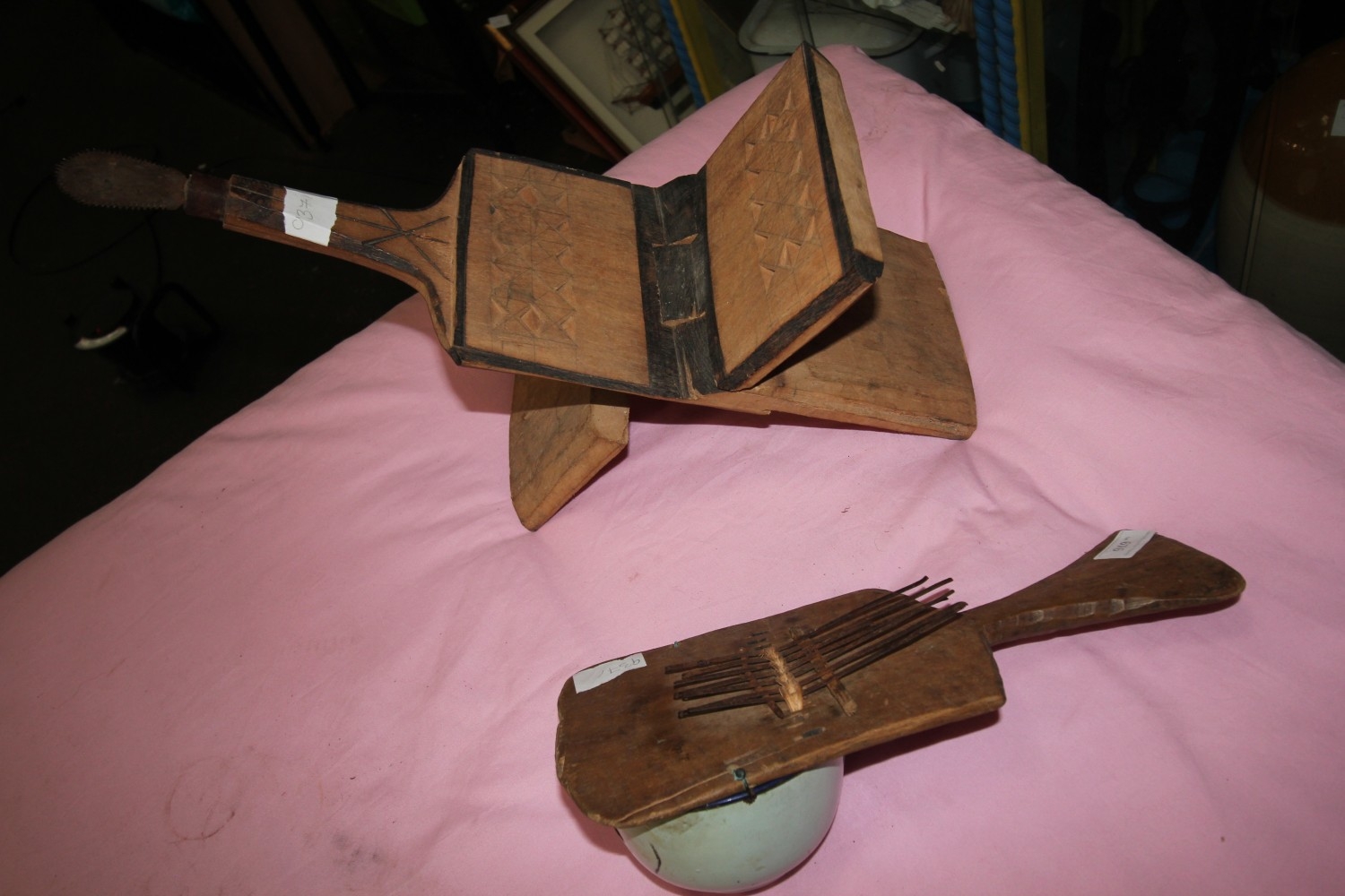 vintage African coconut cleaning stool plus hand made wooden instrument