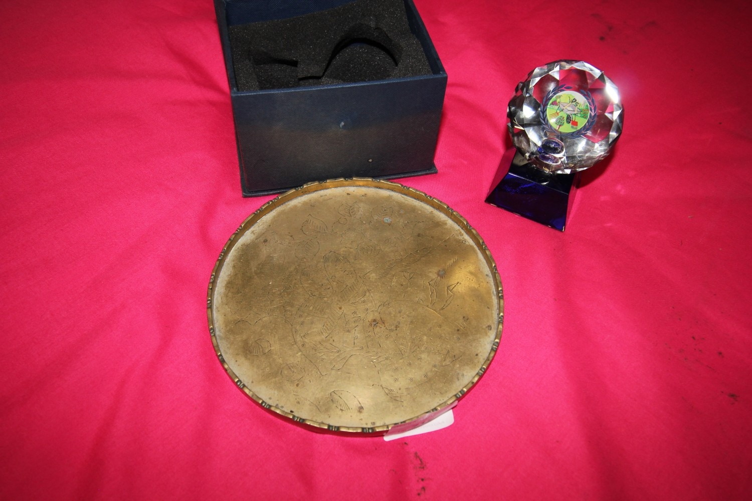 Lot 715: boxed crystal gardening ornament plus metal dish