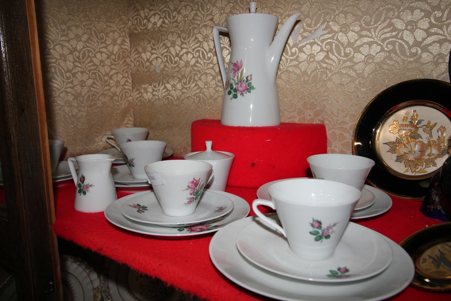 Vintage West German porcelain tea service made by Schirnding comprising of a teapot, creamer jug, sugar bowl and 6 x cups, saucers and side plates – in lovely condition.