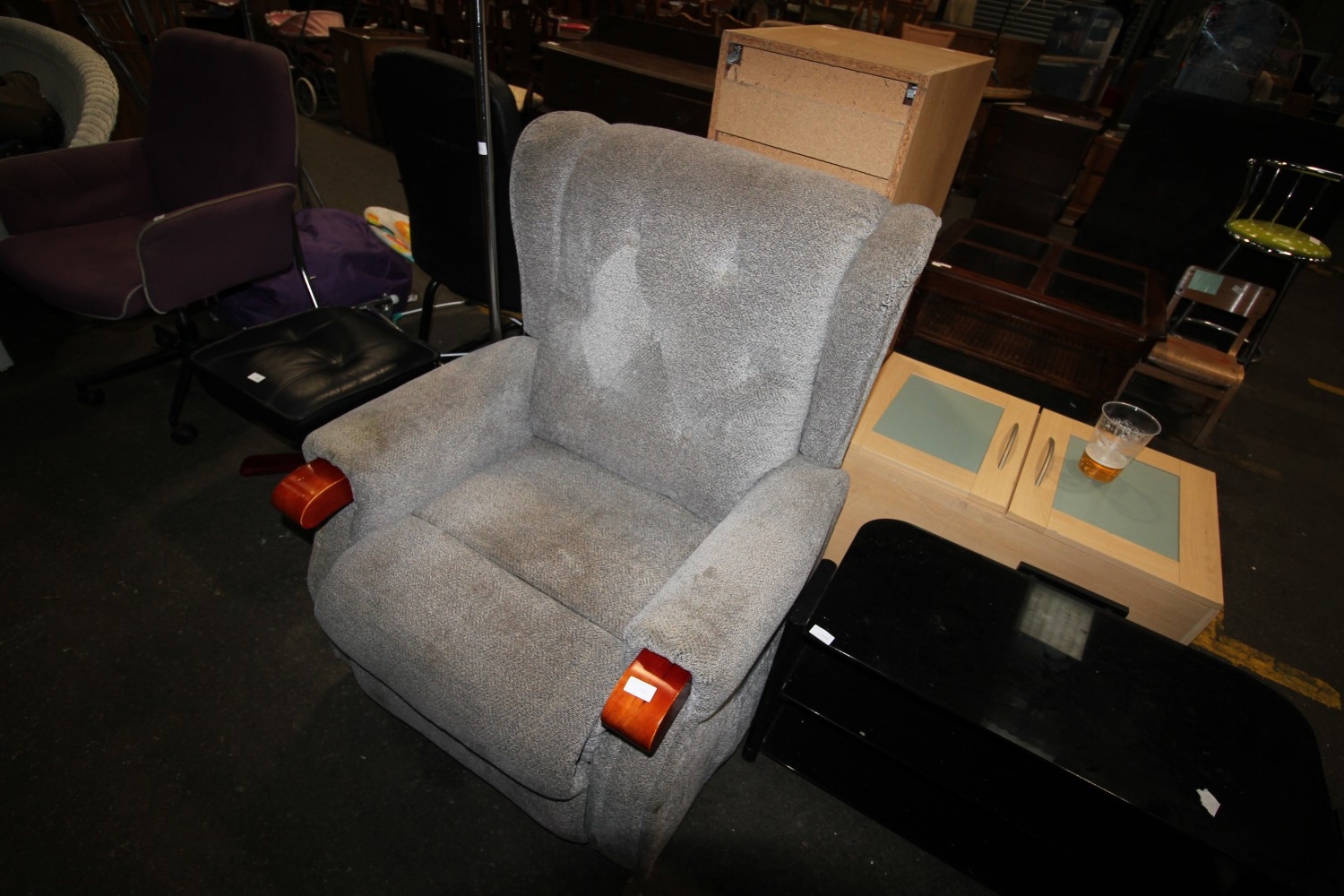 grey electric reclining armchair with side pockets