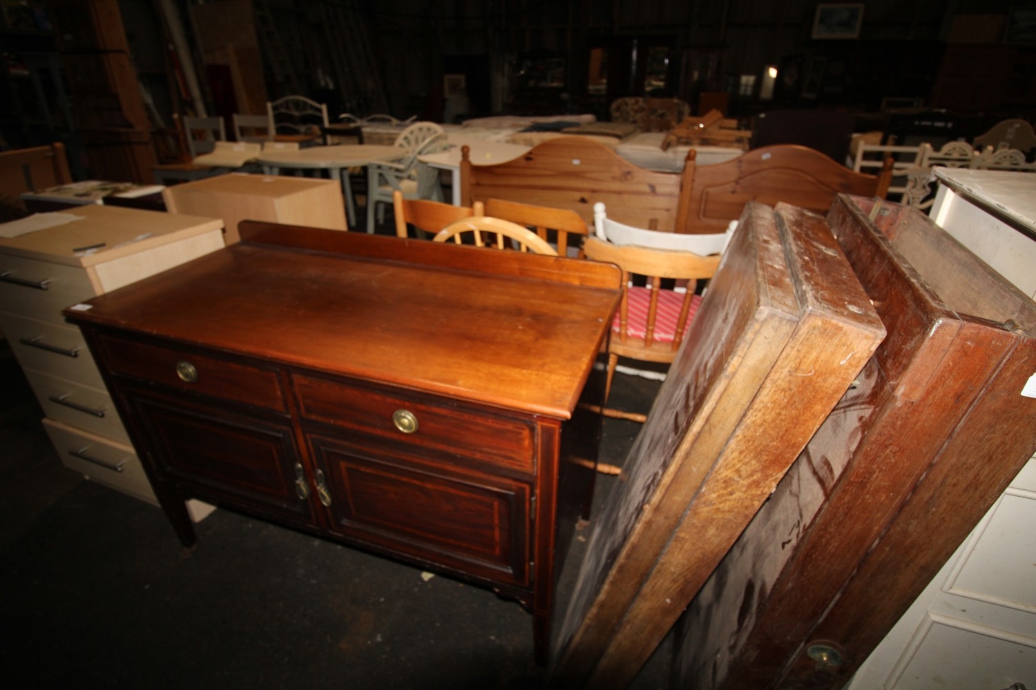 Lot 798: antique wooden sideboard on wheels with 2 drawers...