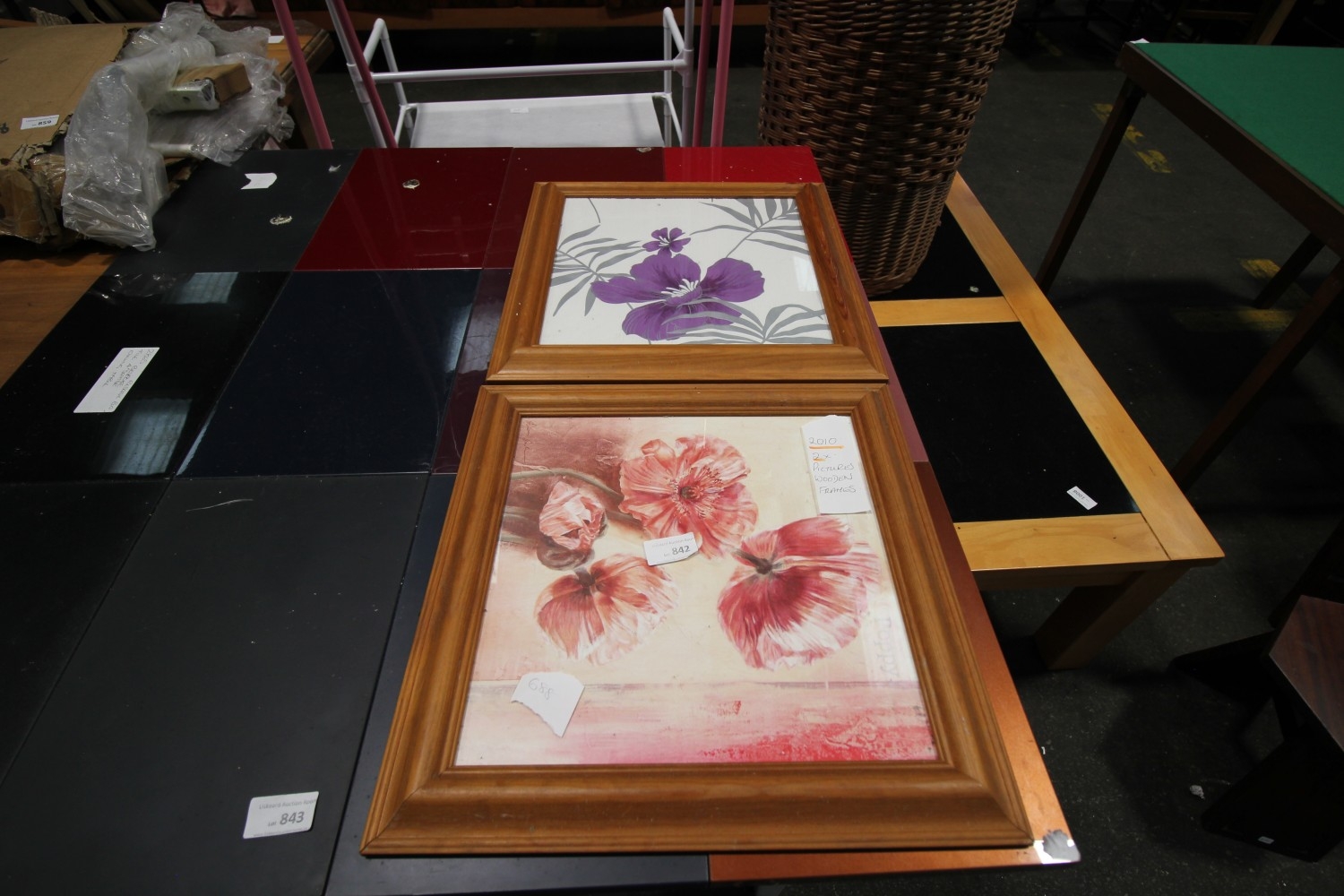 Lot 842: 2 x floral pictures, poppies and iris in...