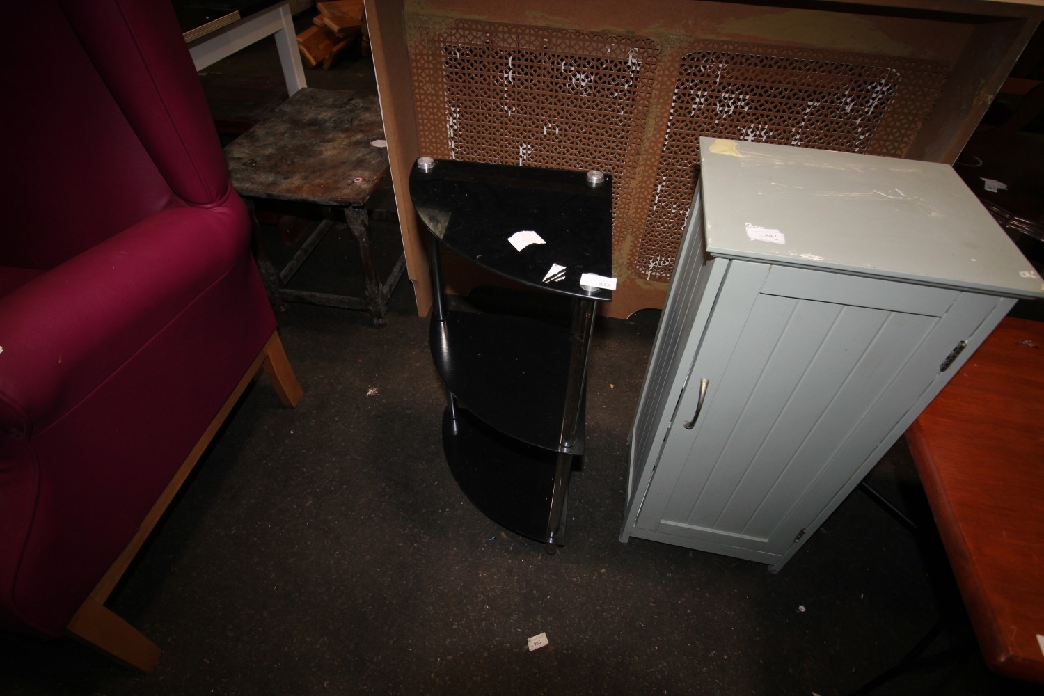 Lot 848: Contemporary black glass and chrome 3 tier corner...