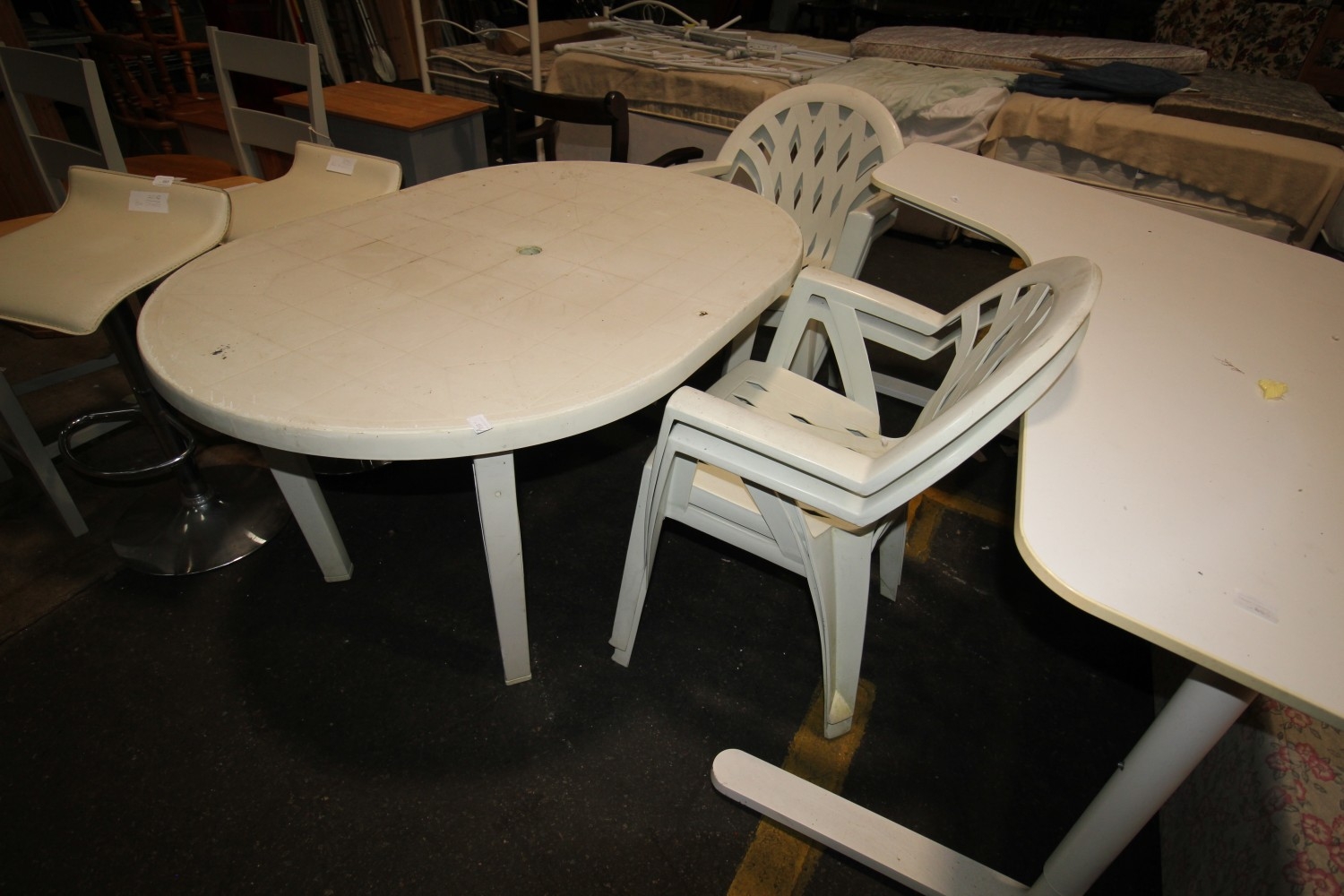 White upvc garden table with four matching chairs