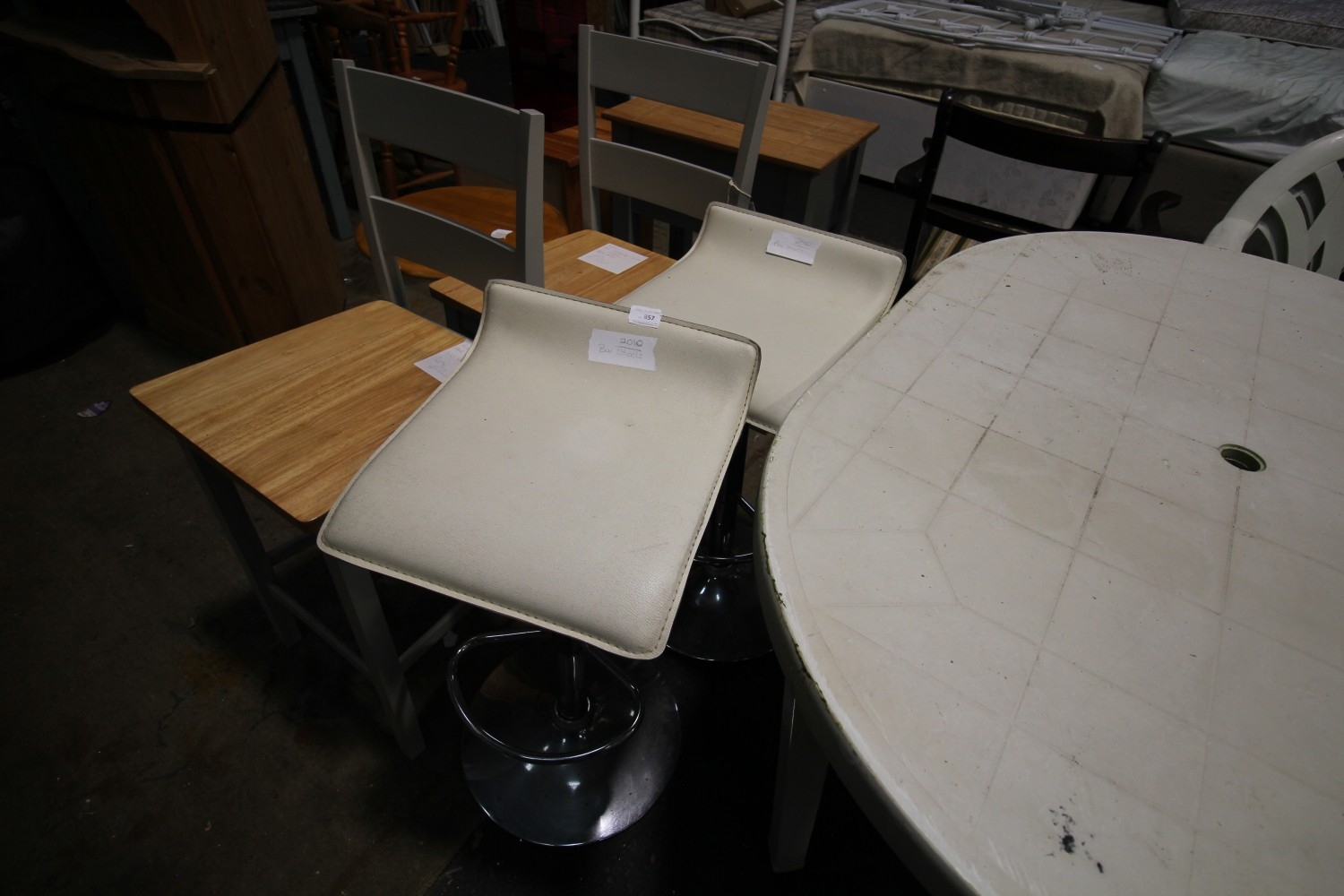 A pair of cream Baceno kitchen / breakfast bar stools – height adjustable from 560mm to 760mm and has a swivel action