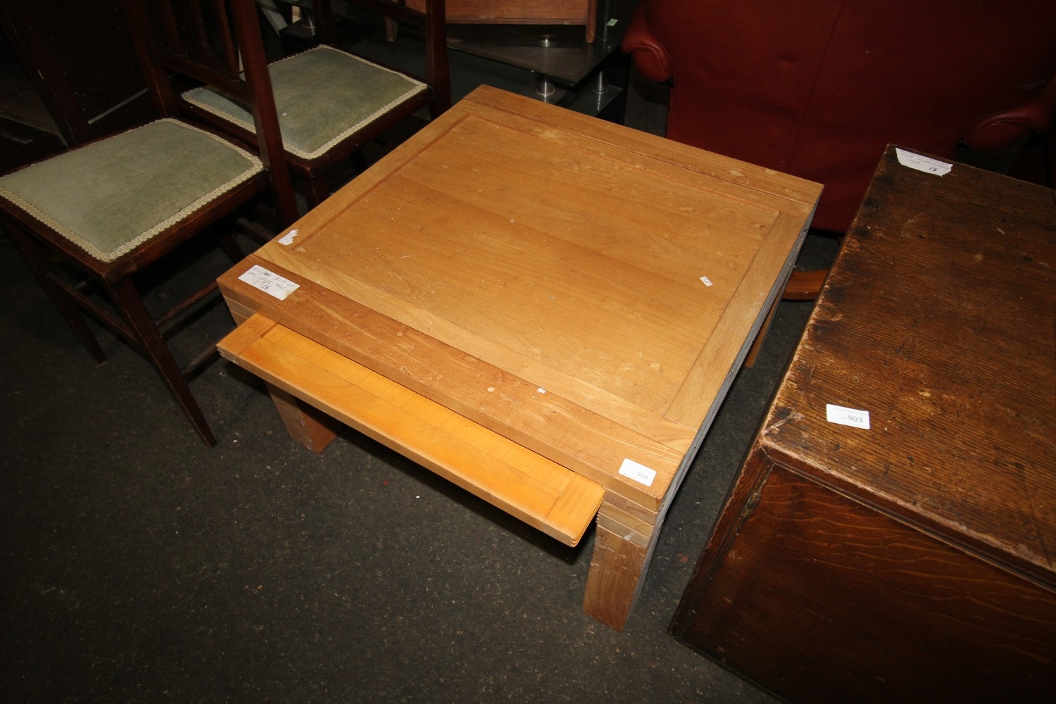 Lot 904: Unusual oak coffee table with slide-out leaves on...