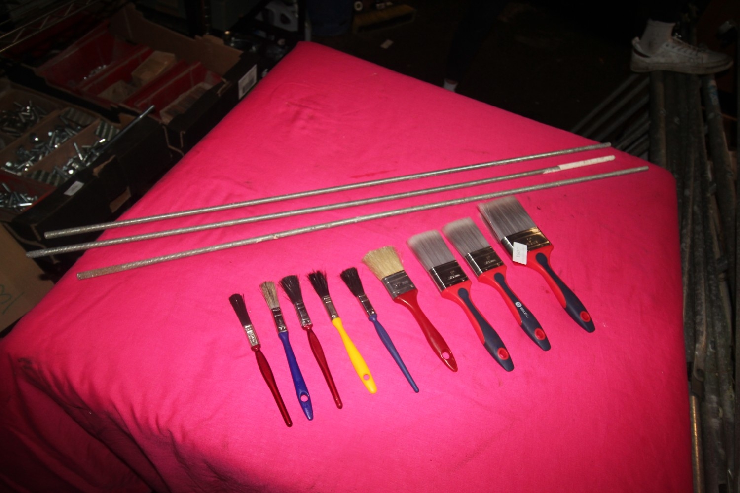 selection of good quality paint brushes plus 3 lengths of threaded bar / engineer’s studding