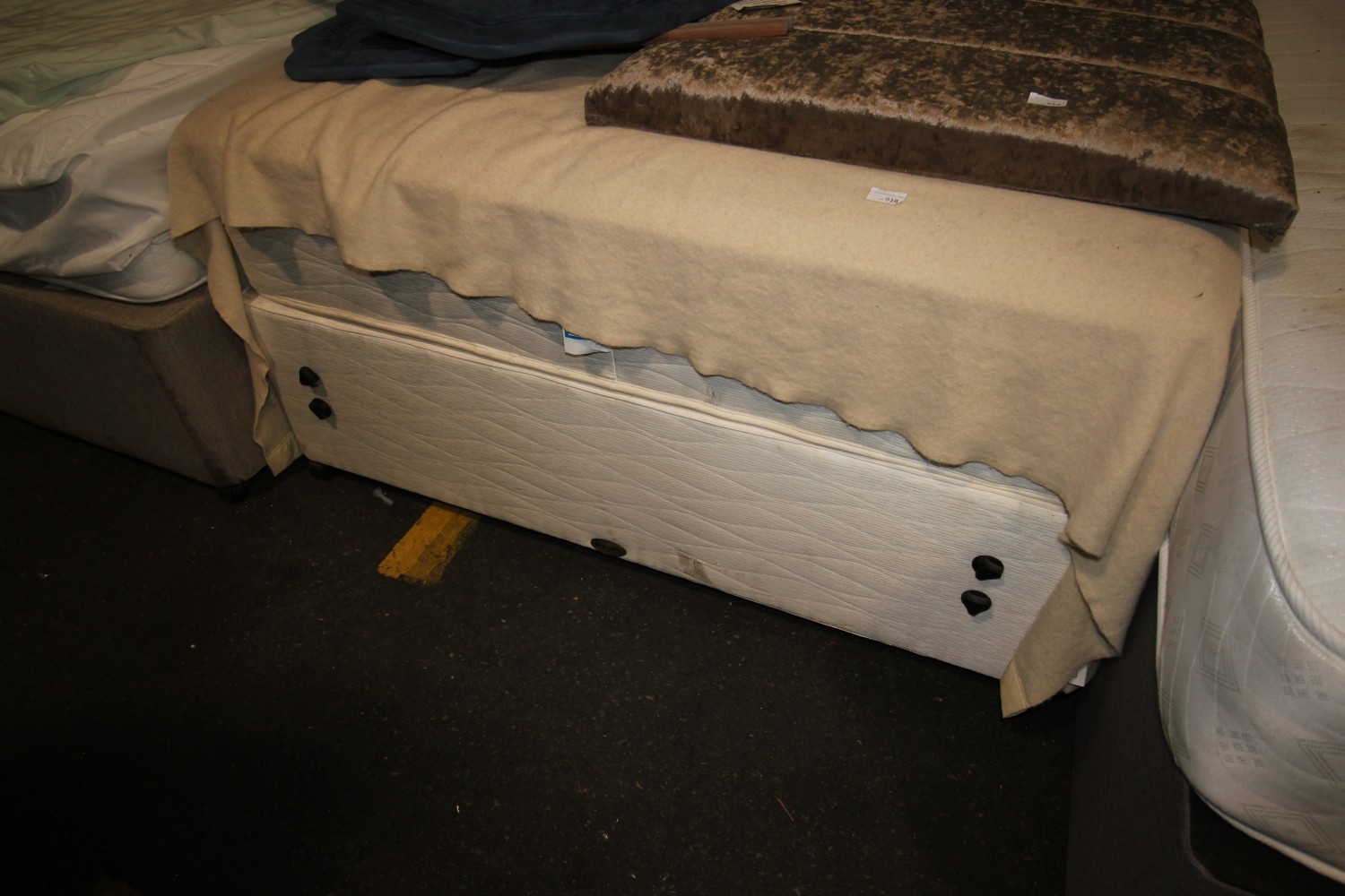 Cream coloured double divan bed base with very deep, comfortable mattress. Has been kept under cover so also very clean