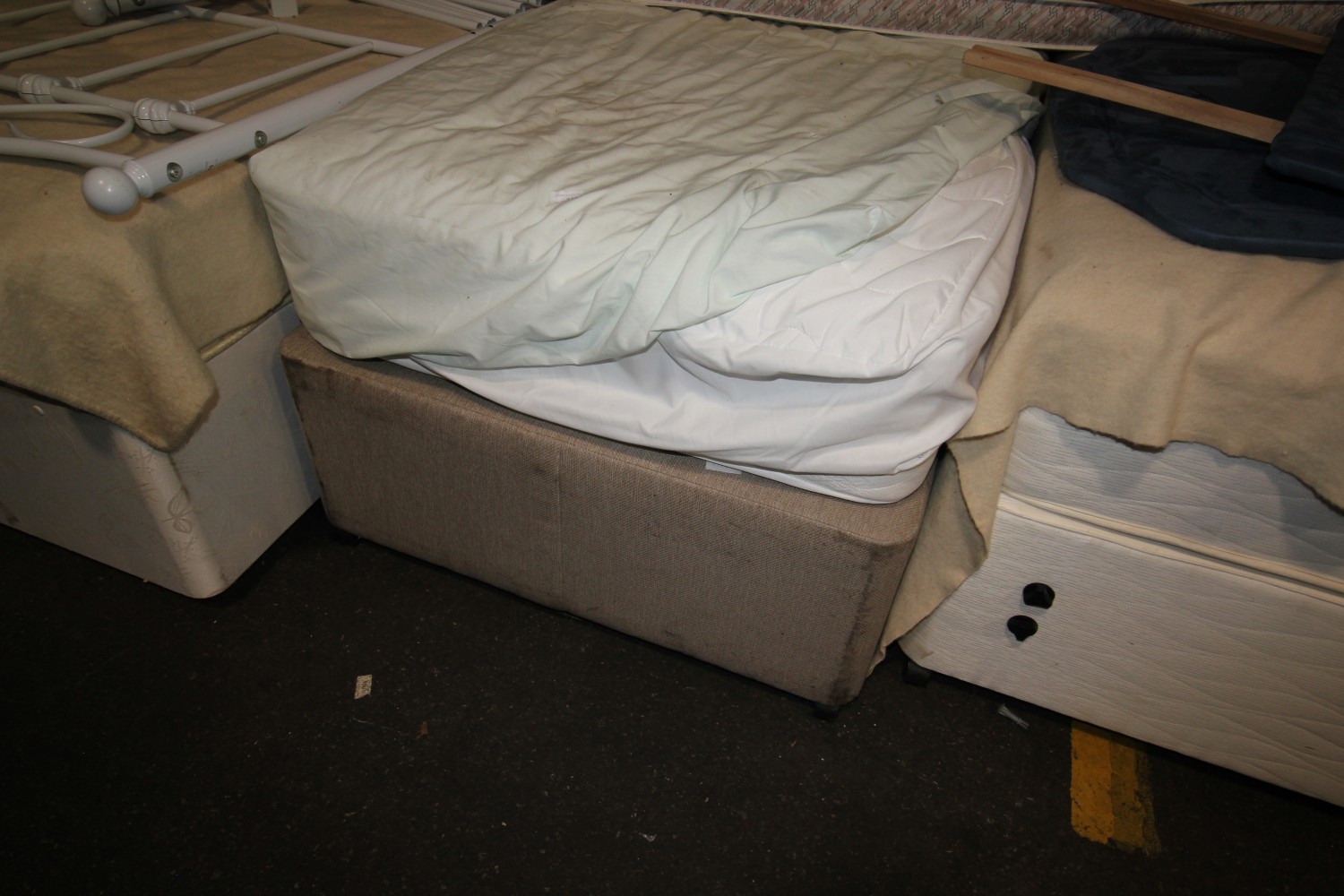 3′ single divan bed with deep mattress. Mattress feels like it has an inbuilt topper so very comfortable and as it has been covered, also very clean